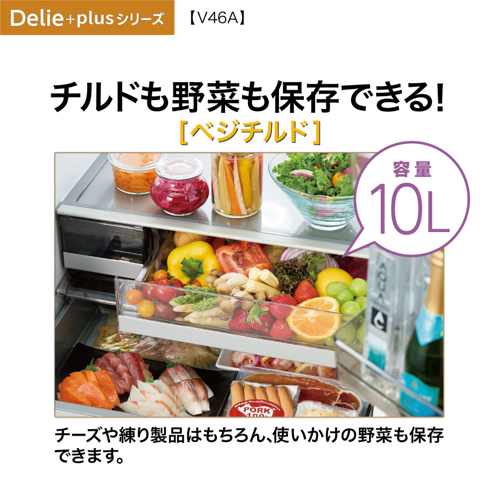 ・冷蔵室から見えて整理もしやすく、鮮度も旬も見逃さない『見える野菜室』