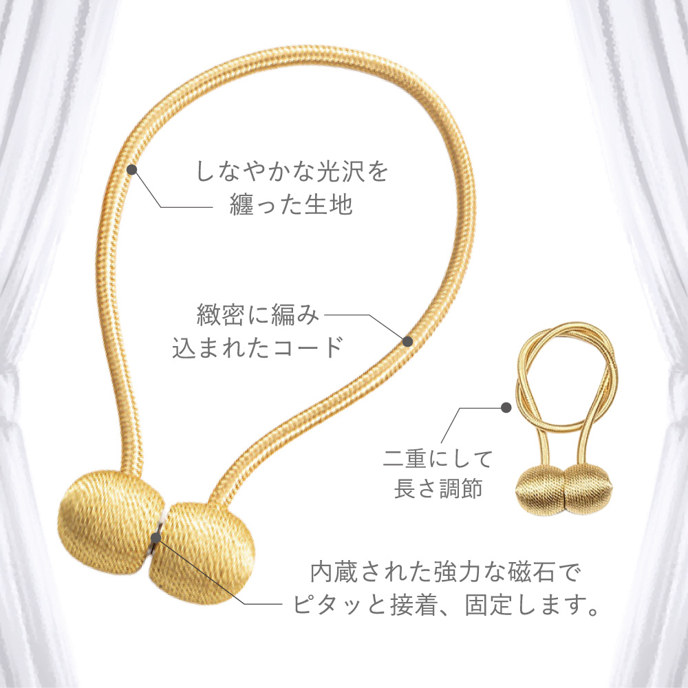 高級感のあるデザインで簡単にカーテンをまとめます。強力マグネットにより少しだけカーテンを開けたい時やカーテンを完全に閉じる時にも使用可能。使い方簡単の”カーテンマグタッセル”。