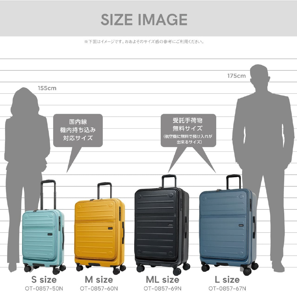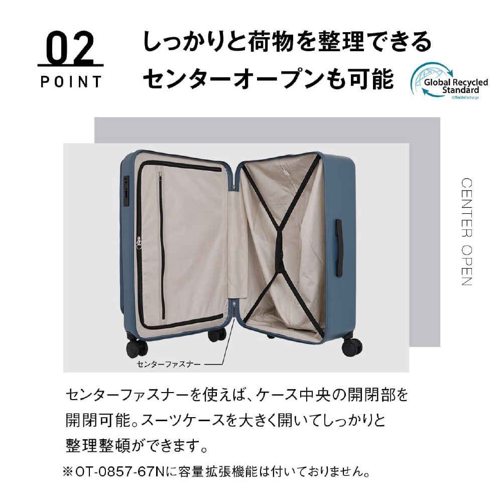 スーツケース フロントオープン 約97L インクブラック OT-0857-67N-IBK [TSAロック搭載]