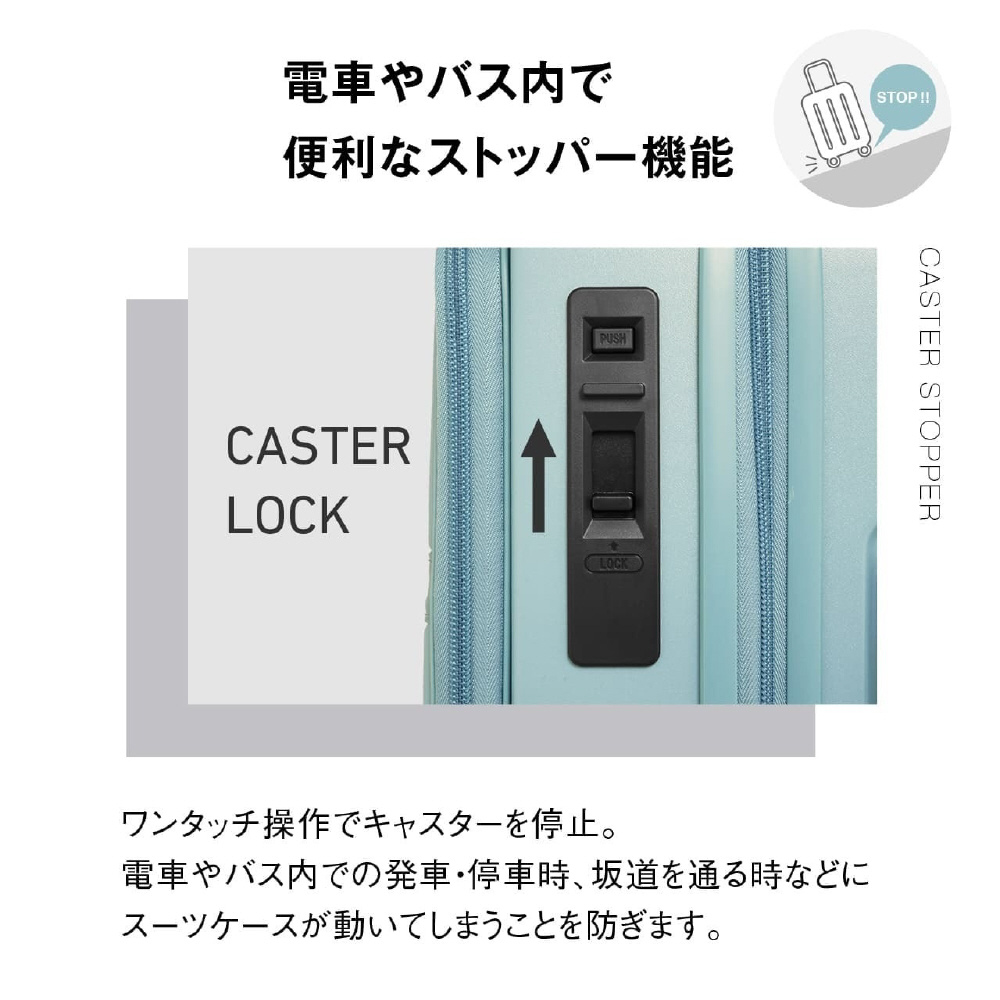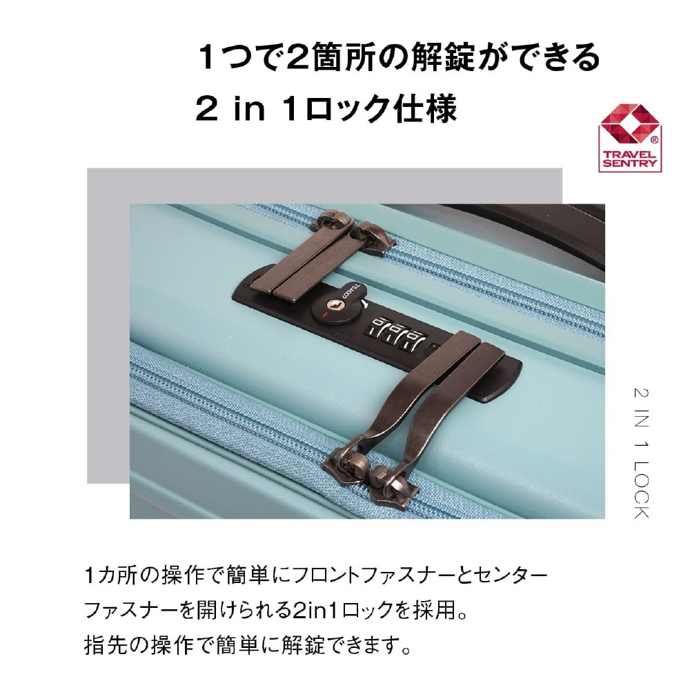 ハーフオープン ファスナータイプ 旅行日数目安: 2〜3泊 約37L TSAロック搭載 ストッパー付き 静音キャスター
