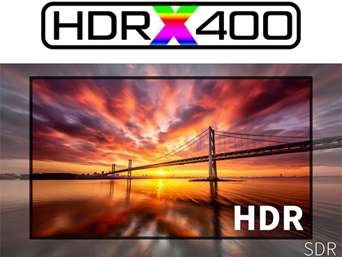 ■最大輝度400cd/m2、sRGB:100%の広色域に対応した液晶パネルは、HDR400相当の性能を持ち、コンテンツを色鮮やかに映し出します。HDR(ハイダイナミックレンジ)は、明るい部分も暗い部分もくっきり表現し、リアルに迫った深みのある映像を演出します。HDR対応のブルーレイディスクやビデオ・オン・デマンド、ゲームなどの表示が可能。現実に近い美しい映像をお楽しみください。