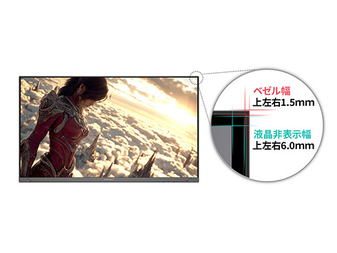 ■AdaptiveSync(FreeSync)に対応。画面のリフレッシュレートとコンテンツのフレームレートのズレから生じるティアリングを防ぎ、滑らかで美しい映像を実現します。また、長時間使用時に眼に優しいフリッカーフリー(ちらつき軽減)、ブルーライト軽減モードを搭載します。