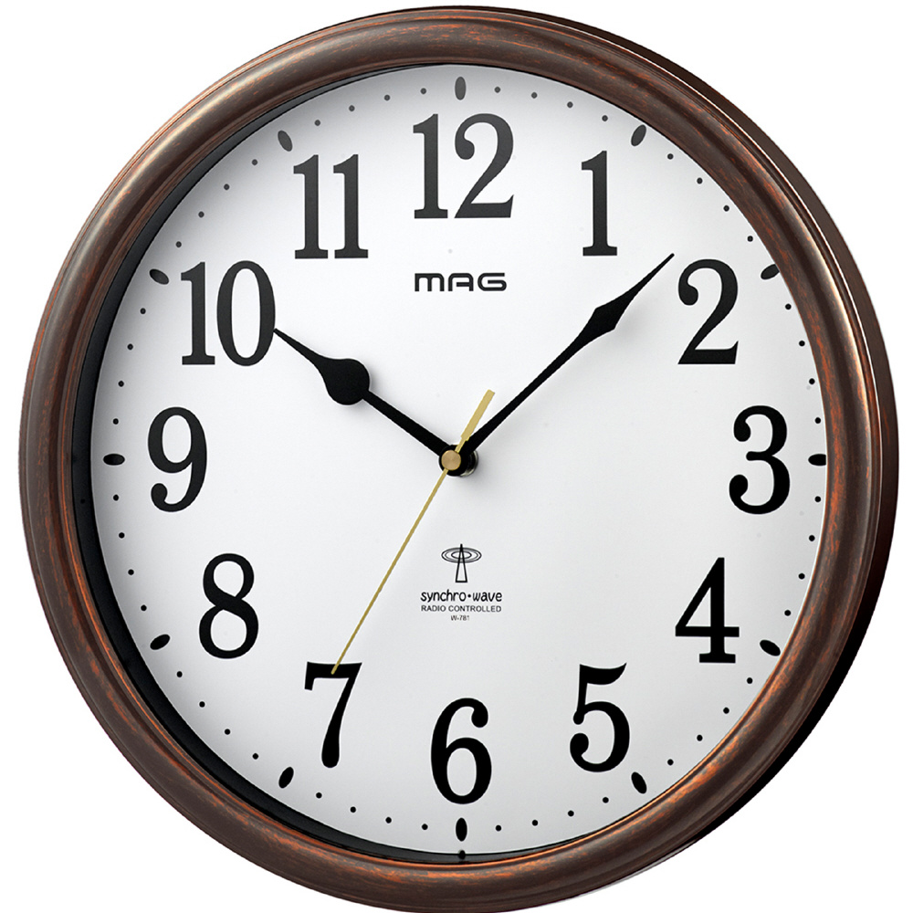 シンプルな木目調の電波時計 桔梗(キキョウ) ブラウン W-781 BR-Z