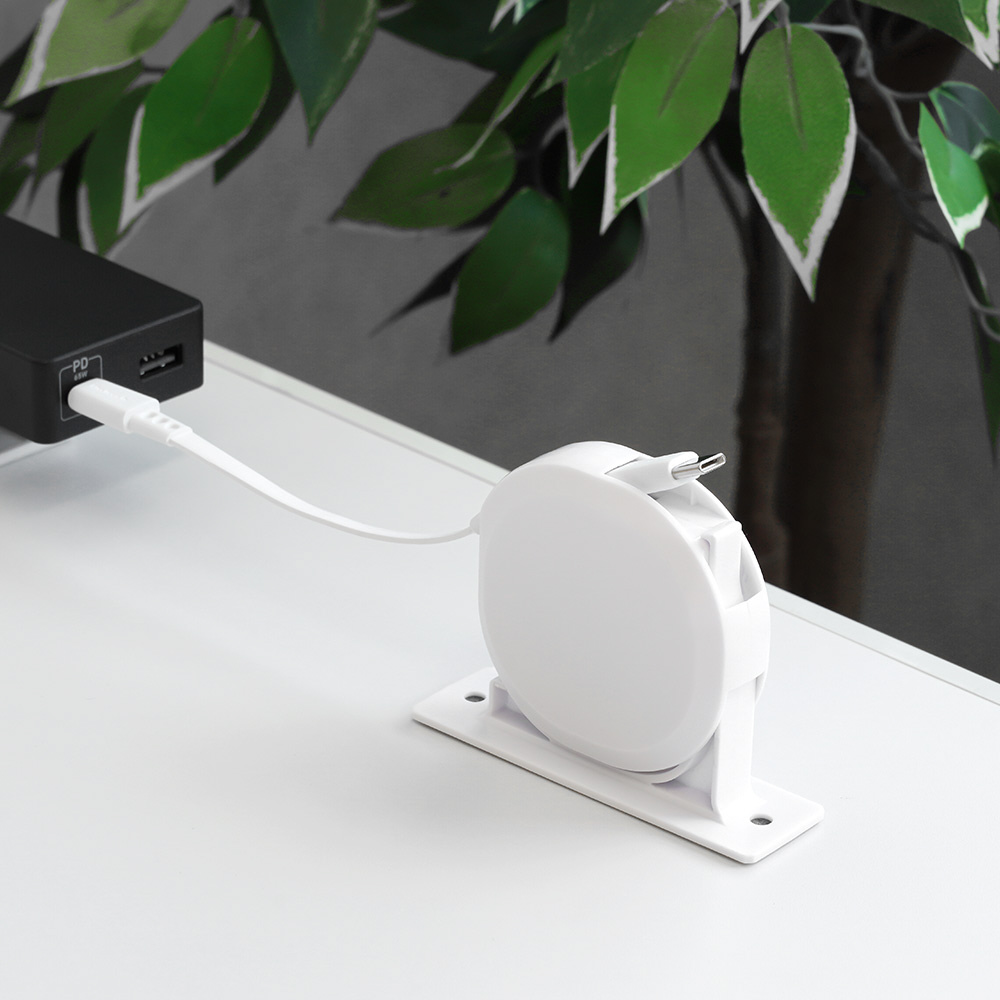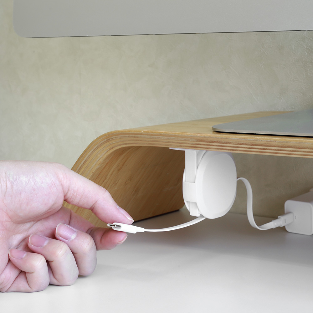 片方のケーブルだけが伸縮するからリール部分が邪魔にならず、デスク周りや外出先など多くのシーンで活躍します。