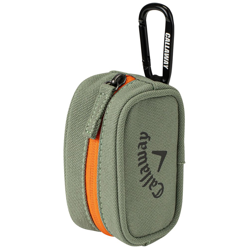 ボール2個収納可能。カラビナ付きでベルトループやゴルフバッグに装着可能。