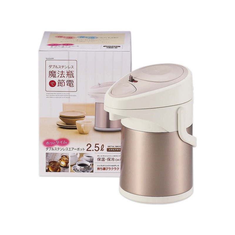 ホッとタイム ダブルステンレスエアーポット2.5L(メタルブラウン) H-6339