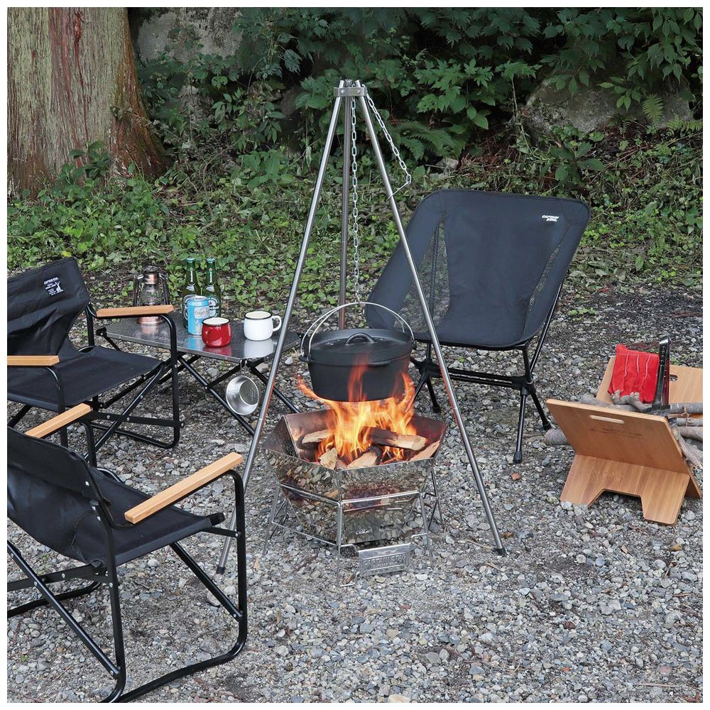 ハイ1m14cm&ロー78cm、2WAYでの使用ができる焚き火三脚