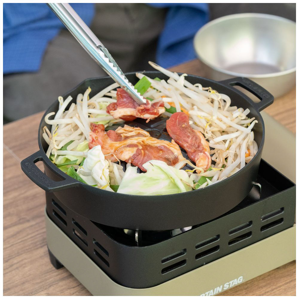 野菜がこぼれにくい深型設計のジンギスカン鍋です。