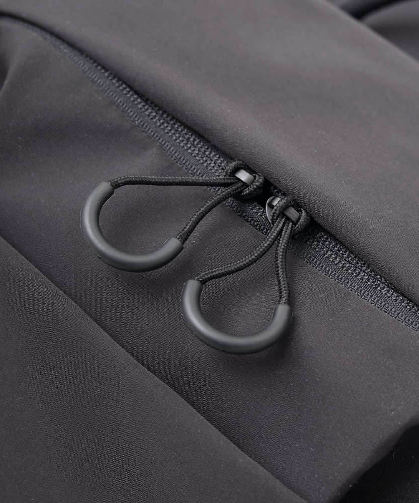 本体の素材には、撥水素材のシワになりにくく、ふんわりとした質感のポリエステルを使用しており、撥水性のあるコイルファスナーを採用しています。このため、雨の日でも安心してお使いいただけます。ソフトで軽やかな印象を保ちながら、ステッチなどの装飾を表に出さず、シンプルで洗練されたデザインに仕上げています。