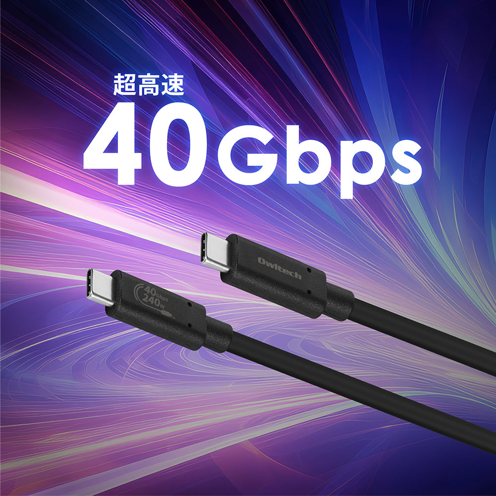 USB-C ⇔ USB-Cケーブル [映像 /充電 /転送 /1.0m /8K /PD240W /USB4(40Gbps)] ブラック OWL-CB40G01CC10-BK [USB-C ⇔ USB-C /8K]