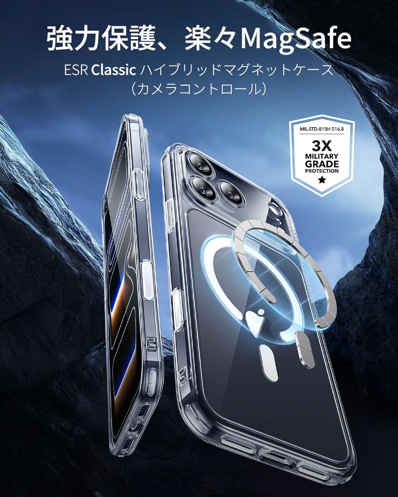 iPhone 17 Pro Max (6.9インチ)MagSafe対応、ミリタリーグレードハードケース 1A86400101-Clear