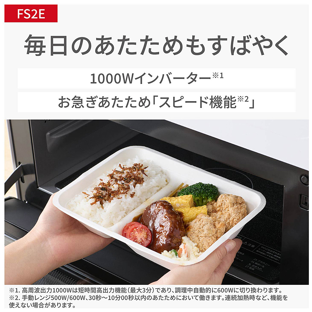 日常使いにうれしい1000Wの高出力。「スピード機能※1」であたためを時短できます。庫内幅35cmで、出し入れかんたん。