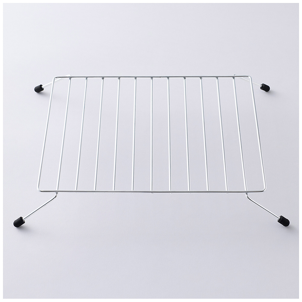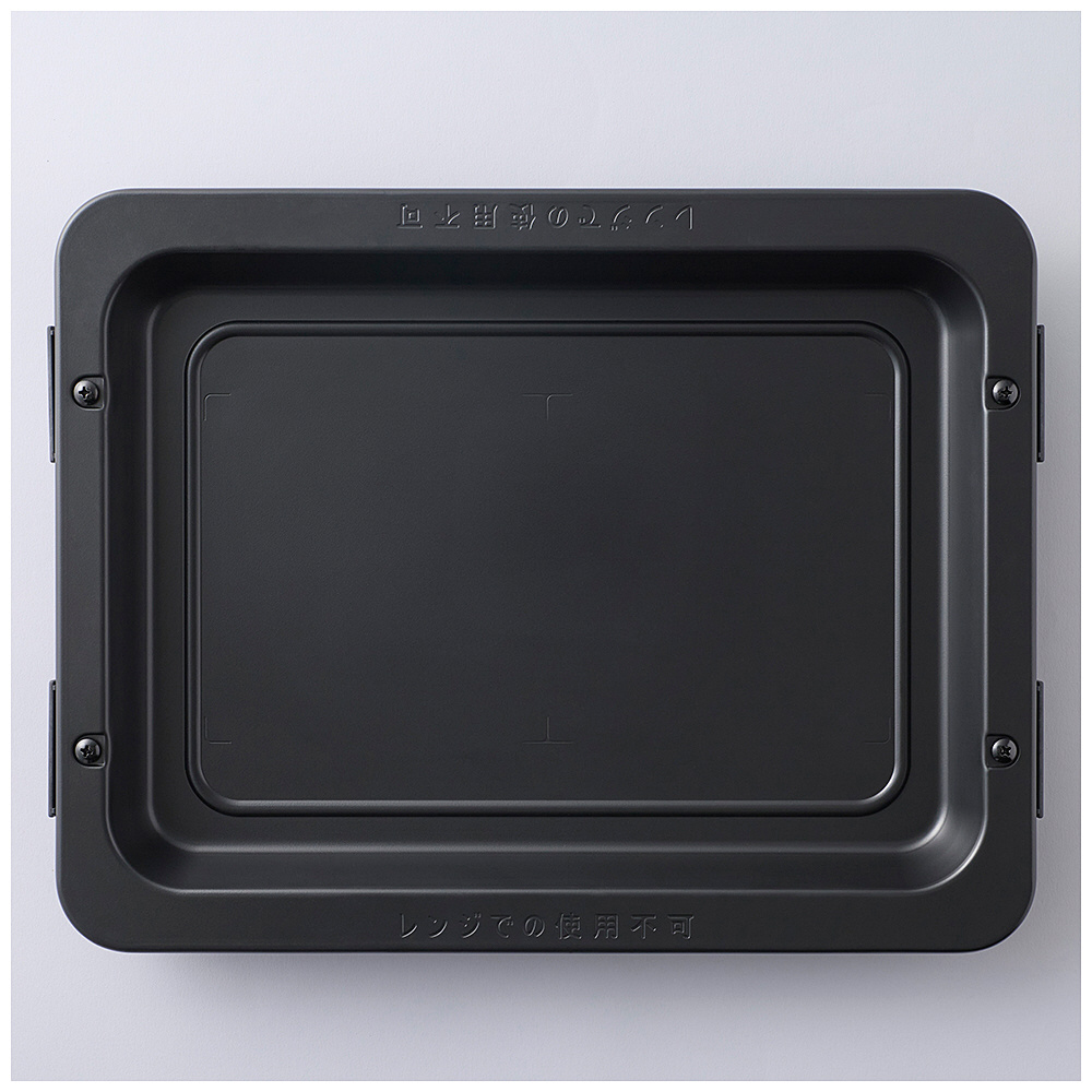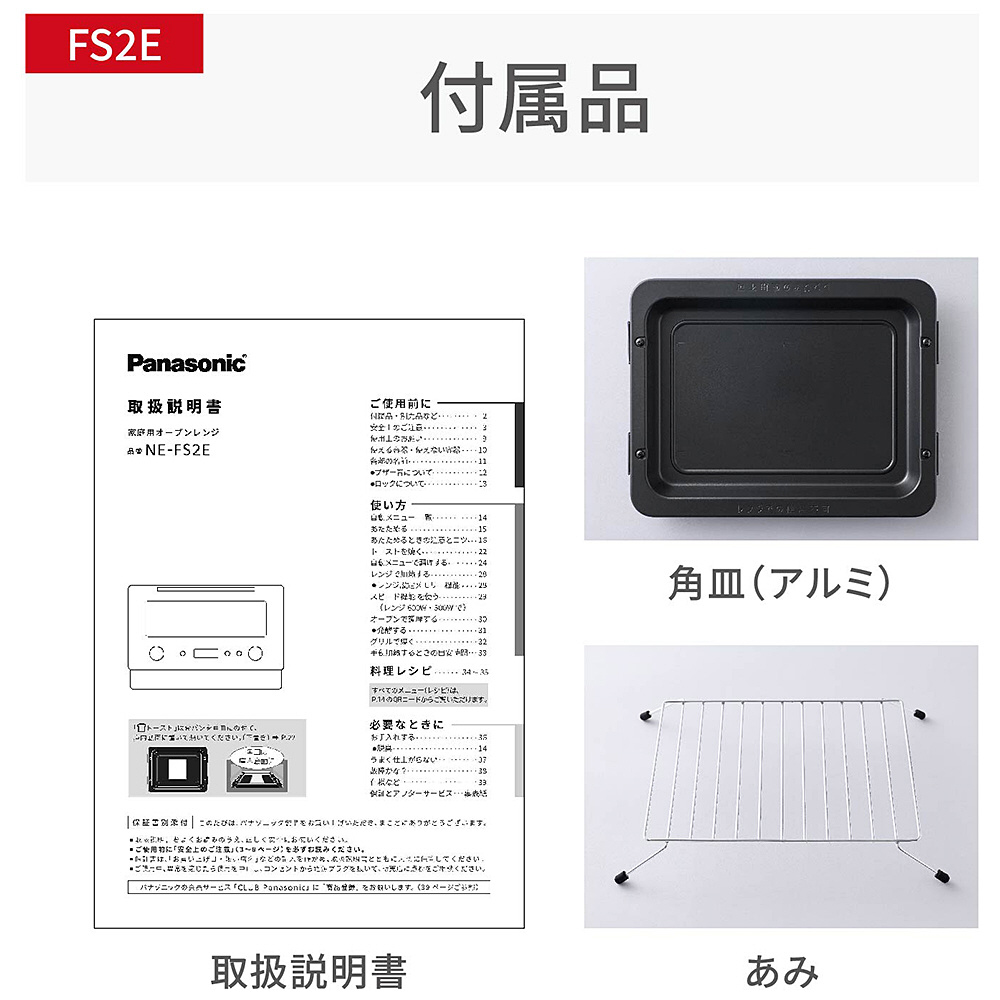 付属品は3点。取説レシピ集、角皿、あみが付きます。トーストは角皿を下置きに。パンやフライのあたためは、あみを下置きに。
