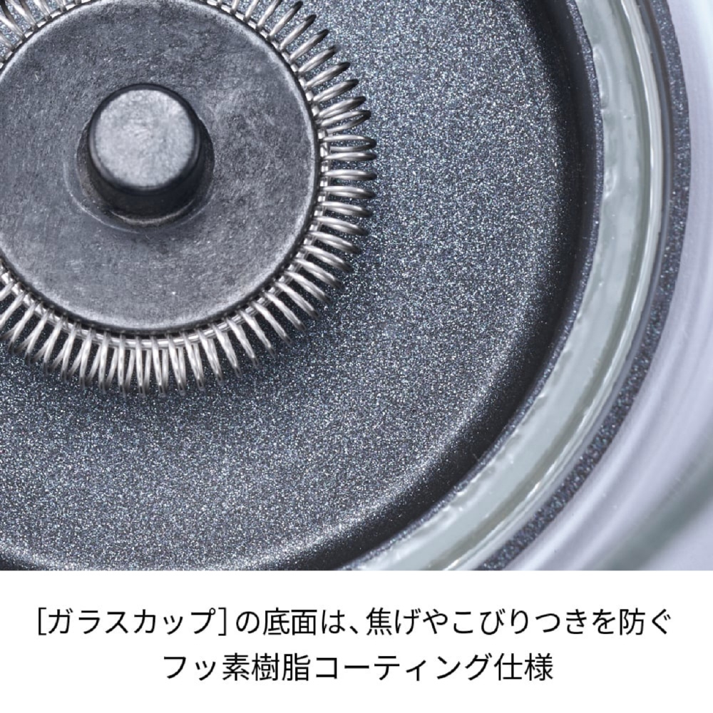 ・ガラスカップの底面はPFOA・PFOS フリーのフッ素樹脂コーティングを施しており、焦げ付き、こびりつきがしづらくなっております。
