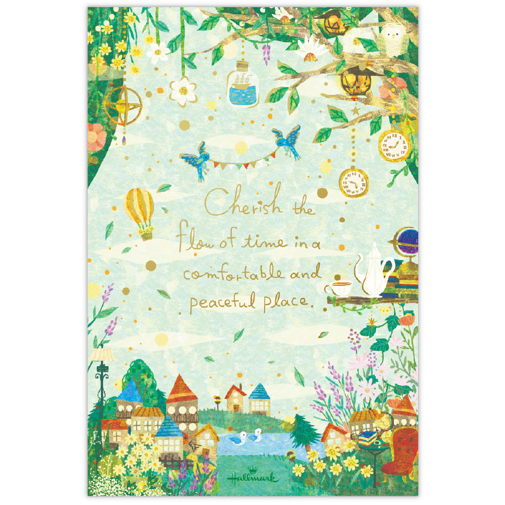 秋から冬にかけて使いやすい落ち着いたトーンのレターコレクション「コンフォート&ピース」。イラストレーター「むうめぐ」が描く、「好きなものに囲まれた心地よい場所」をテーマにしたデザイン。フクロウや鹿、本やティータイムなど秋を思わせるモチーフがさりげなく盛り込まれています。