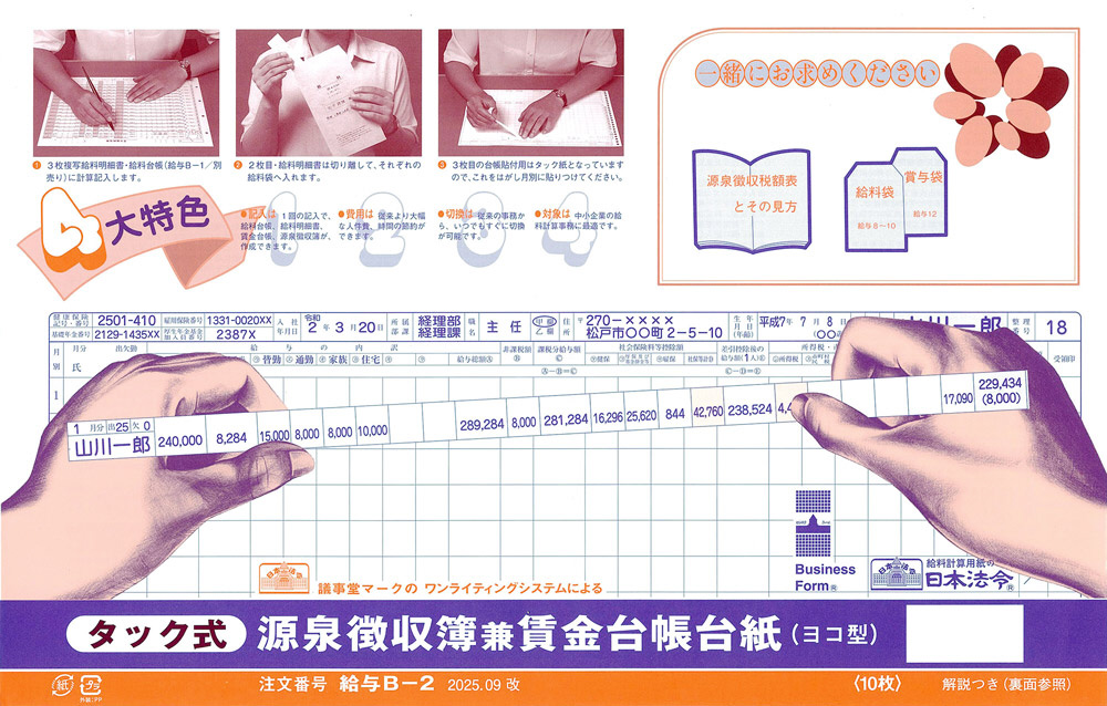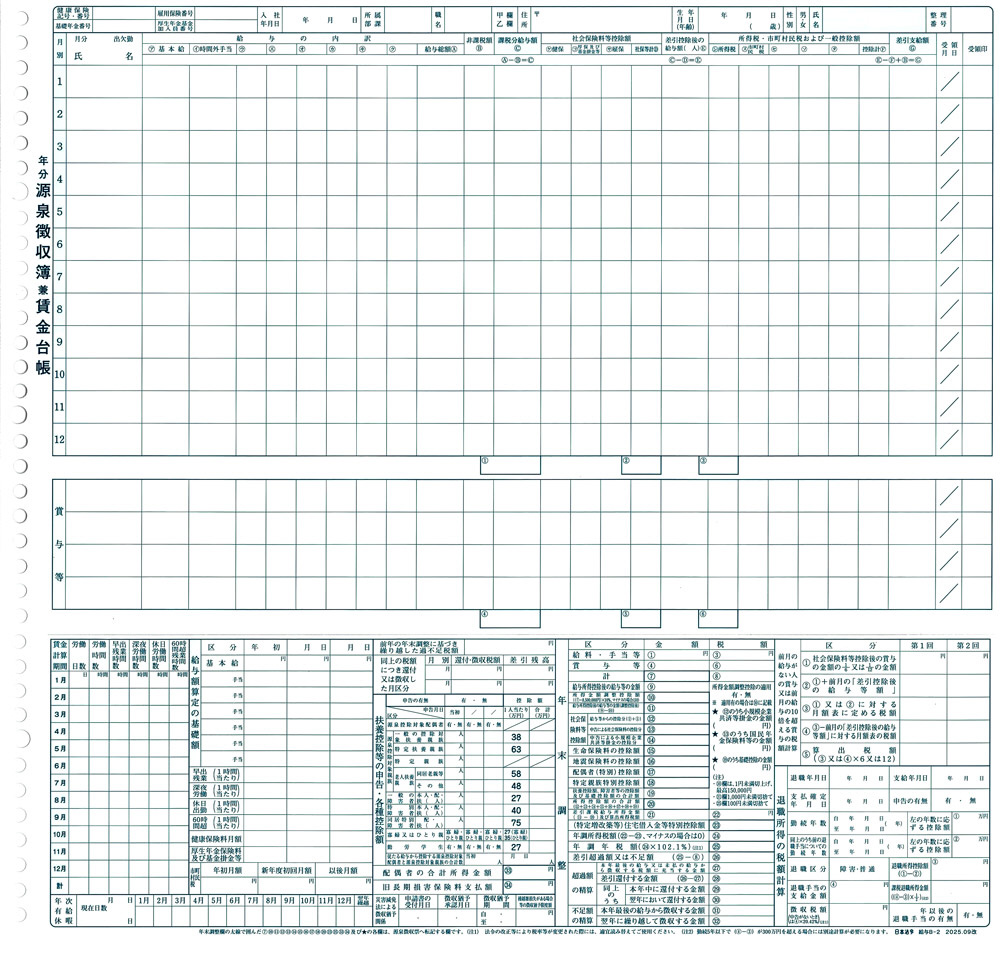 タック式源泉徴収簿兼賃金台帳台紙 B-2