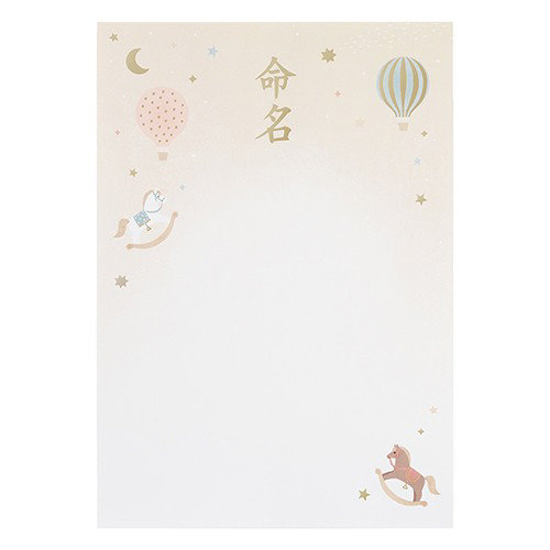 赤ちゃんの名前が決まったらまず書く、インクジェットプリンター対応の命名用紙。片面インクジェット専用紙なので印刷もきれいで、手書き・プリンターどちらでもお使いいただけます。男の子・女の子どちらにも使えるジェンダーレスなデザインで、箔押しの輝きが華やかです。