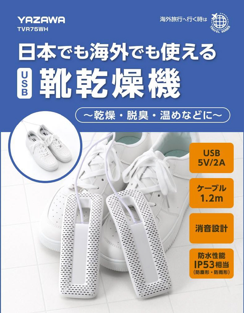 日本でも海外でも使える コンパクトなUSB給電の靴乾燥機