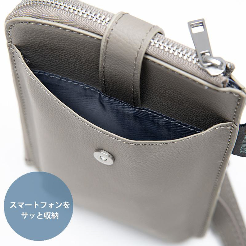 スマートフォンポケットはマグネットボタンでスムーズに開閉できます。スマートフォンの出し入れもラクラク。