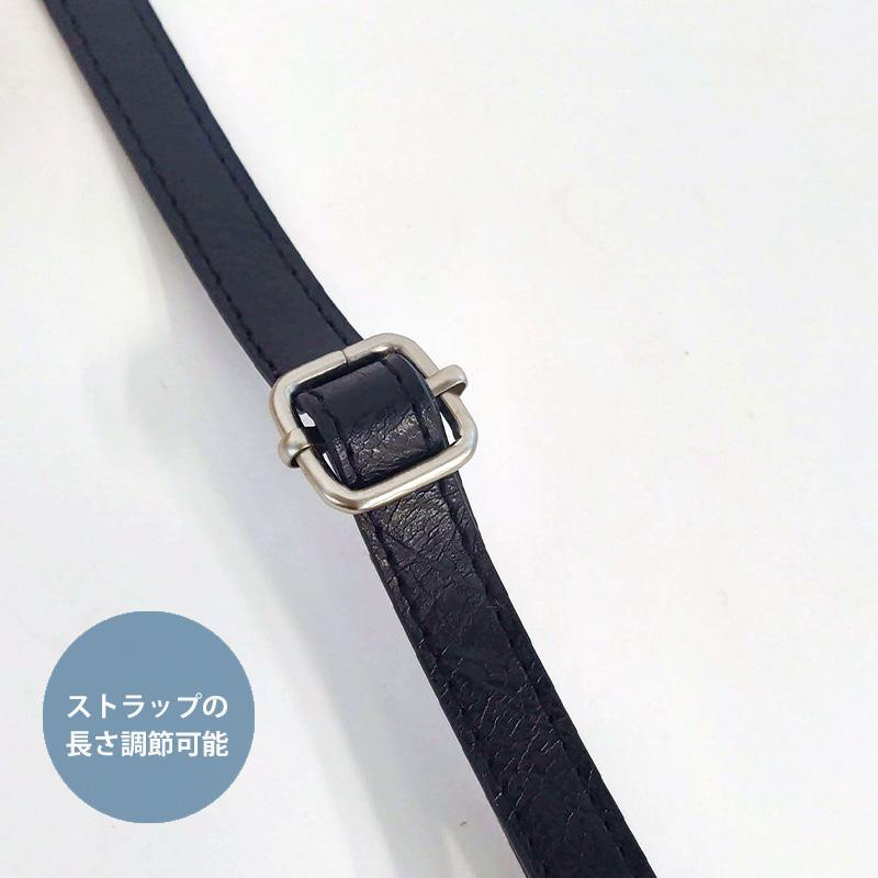 ショルダーストラップは取り外し可能、長さ調節可能。シーンに合わせて使い分けできます。首掛け、肩掛け、バッグインバッグにも。