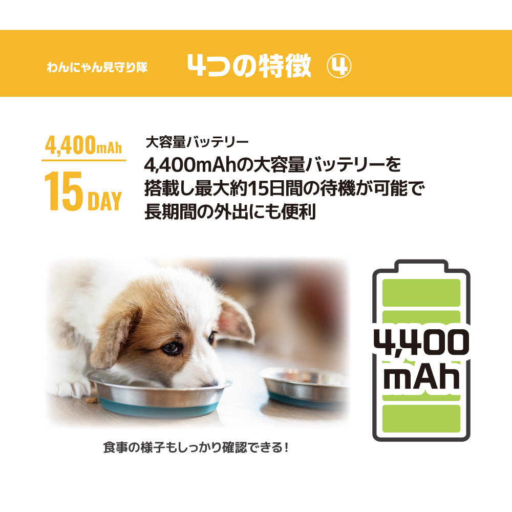 ペットの様子をフルハイビジョンで見れる高画質カメラ搭載。ペットカメラは1080Pの高画質で110°の広角カメラ搭載。