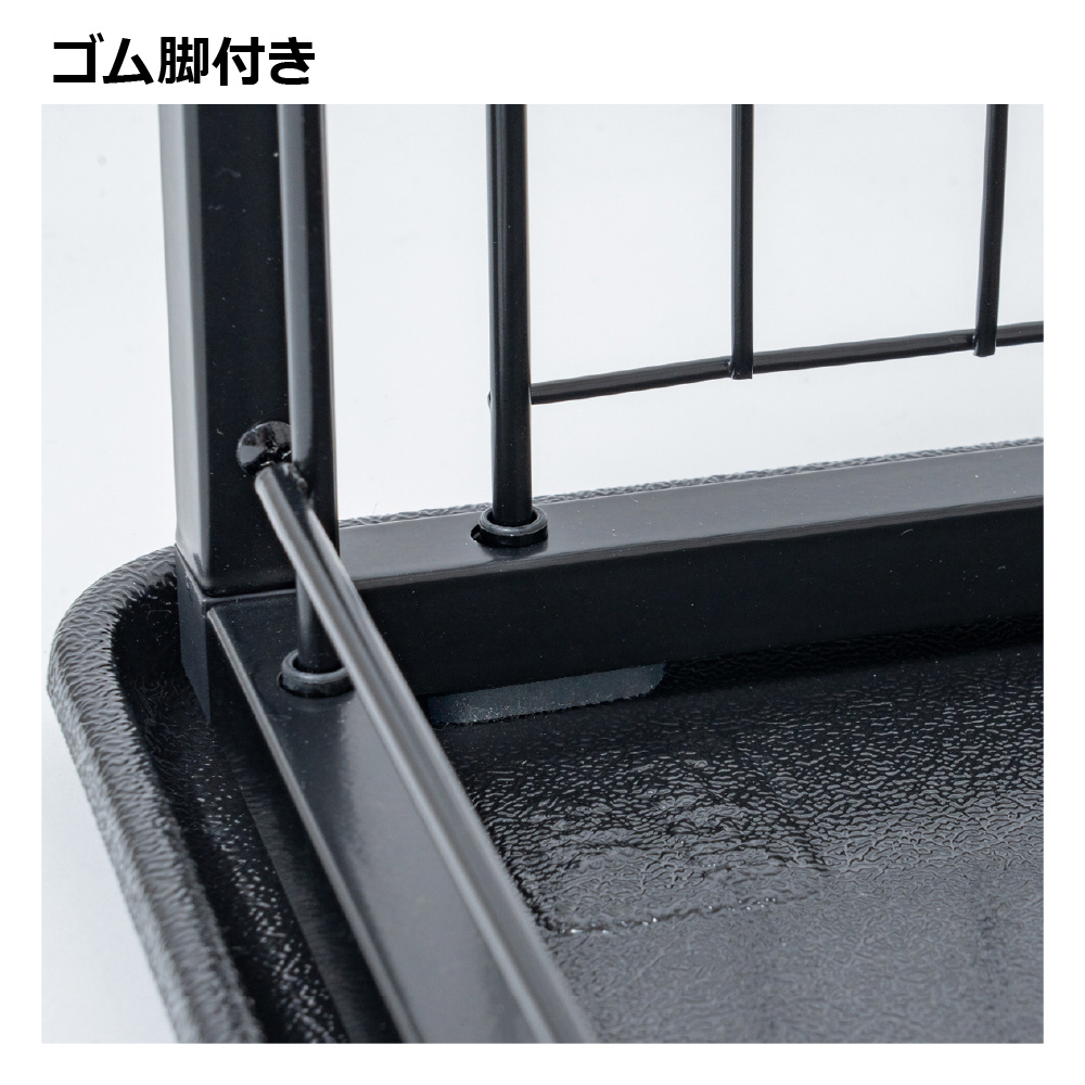 フレーム部・ワイヤー部/スチール(ポリエステル塗装)、ドアロック部・トレー/ABS樹脂、連結部材/ナイロン、滑り部材/ポリアセタール、ゴム脚/合成ゴム