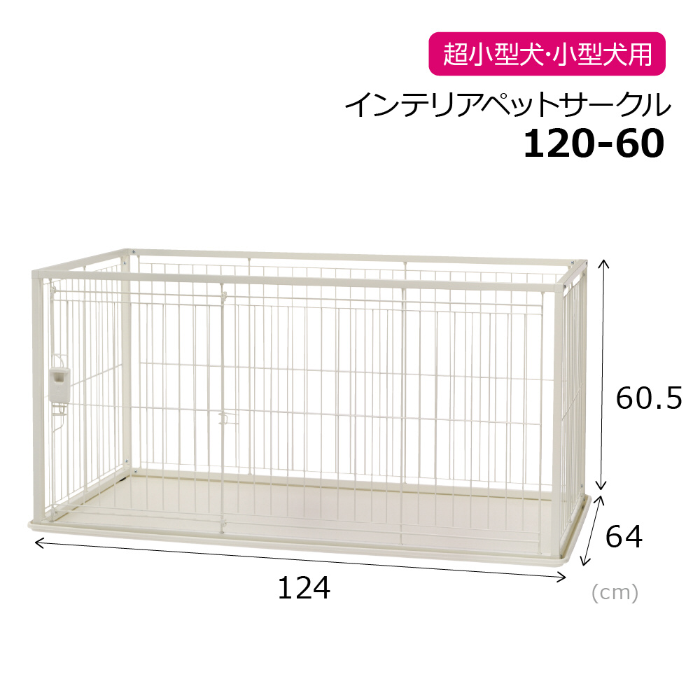 外寸/124×64×60.5H(cm)、内寸/116×56.5×60.5H(cm)、トレー/124×64×2.1H(cm)、トレー内寸/121×60.5(cm)、ワイヤー間/3.8(cm)、扉開口部/39.5×50.5H(cm)、正面パネル開口部/40×50.5H(cm)