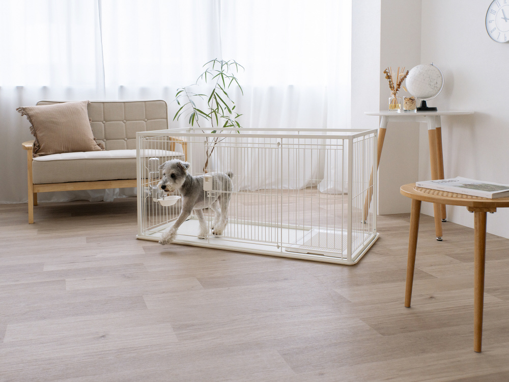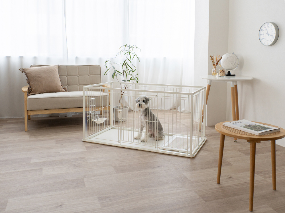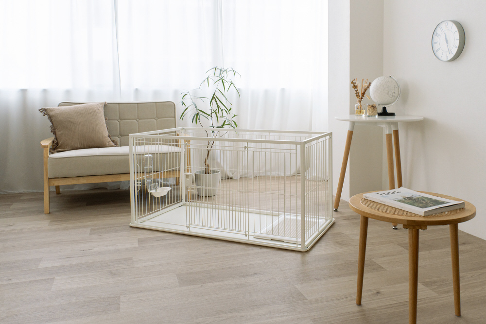 ・インテリアに馴染むホワイトカラーのシンプルデザインのペットサークルです。