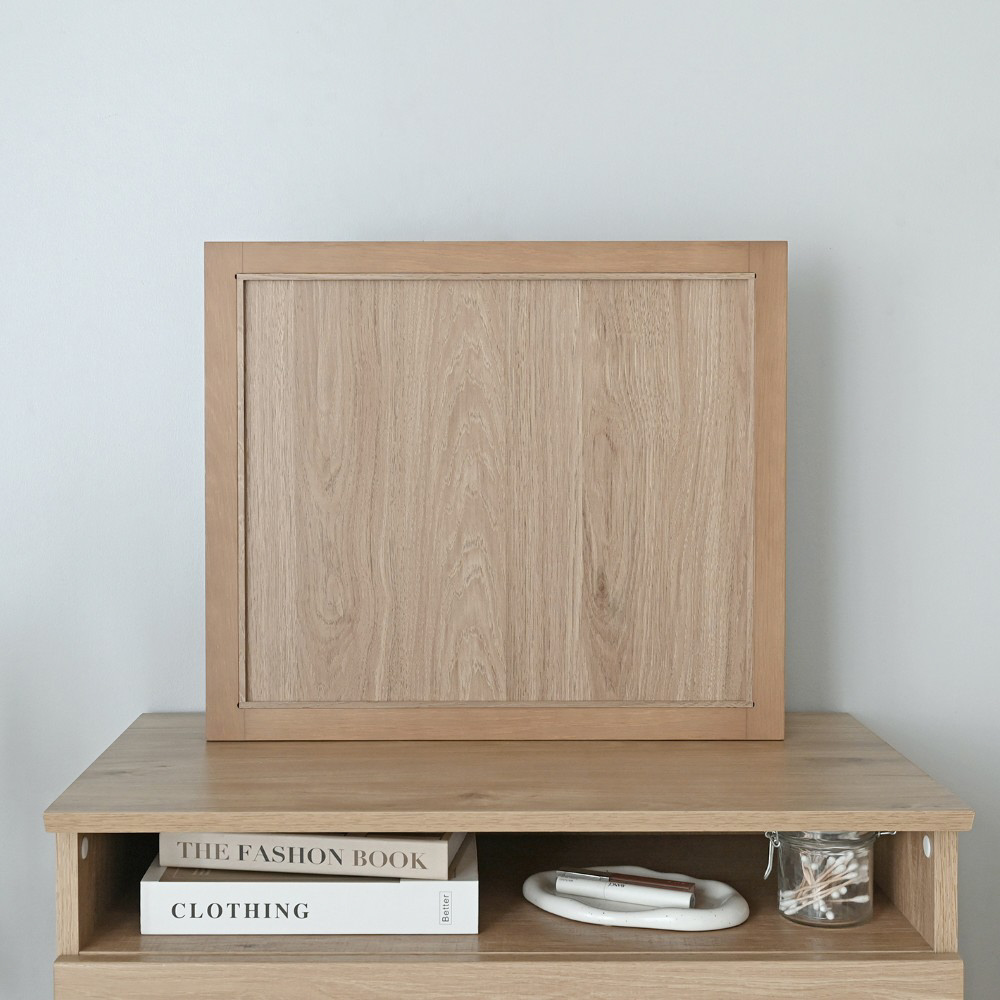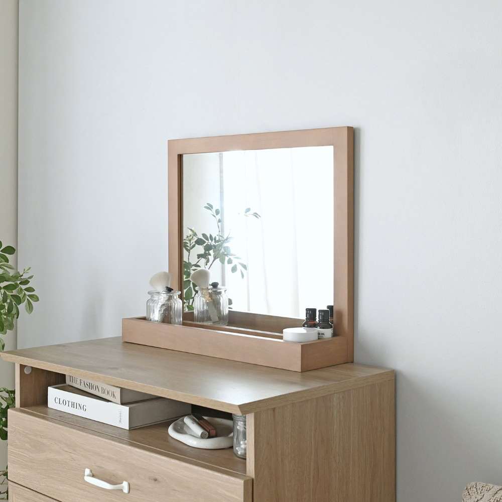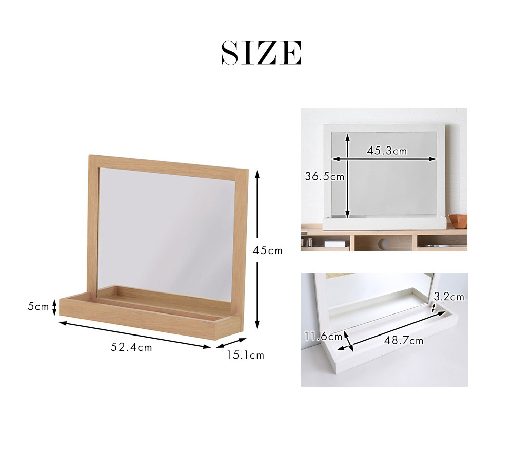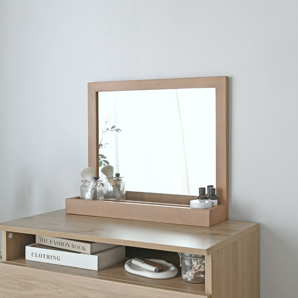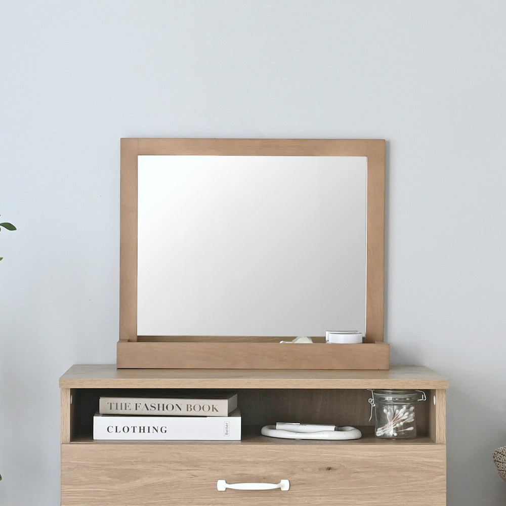 天然木の風合いを楽しめる置型ミラー。手軽に持ち運べ、置くだけでデスクがおしゃれなメイクスペースに。