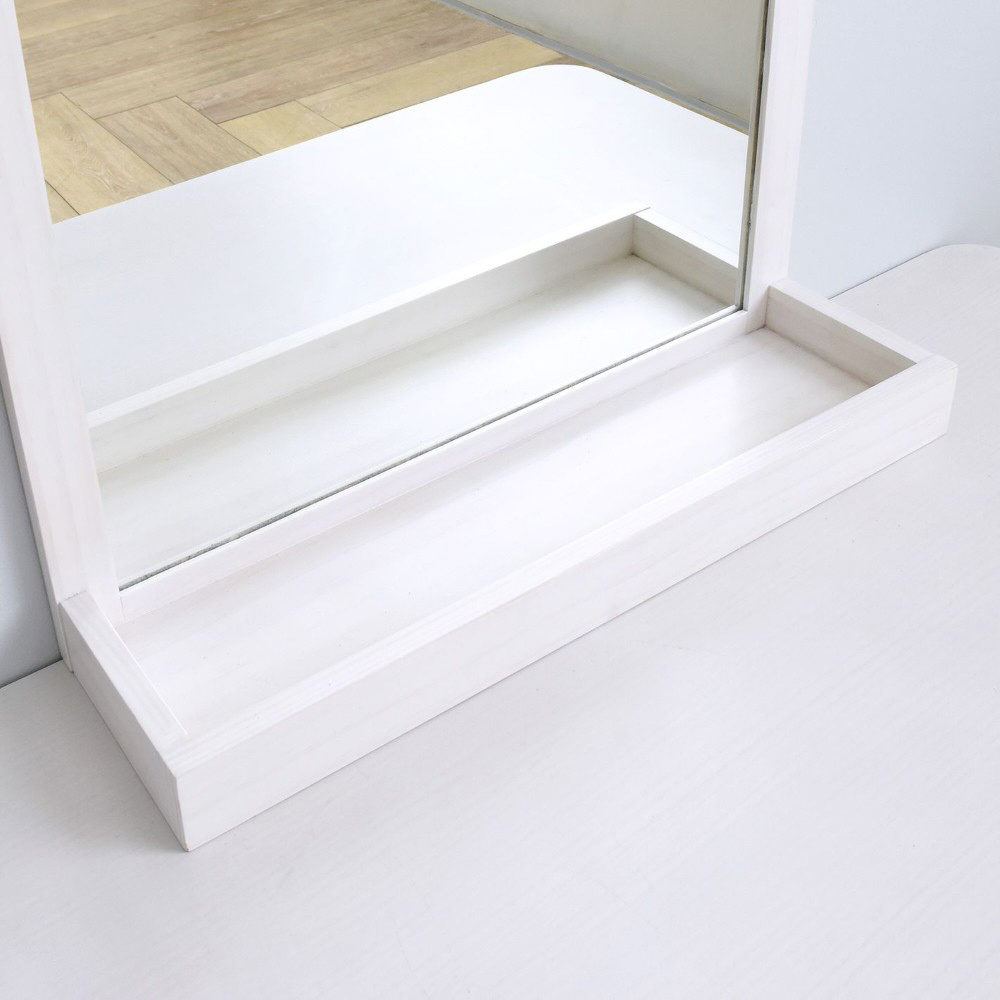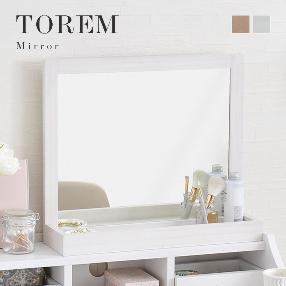天然木の風合いを楽しめる置型ミラー。手軽に持ち運べ、置くだけでデスクがおしゃれなメイクスペースに。