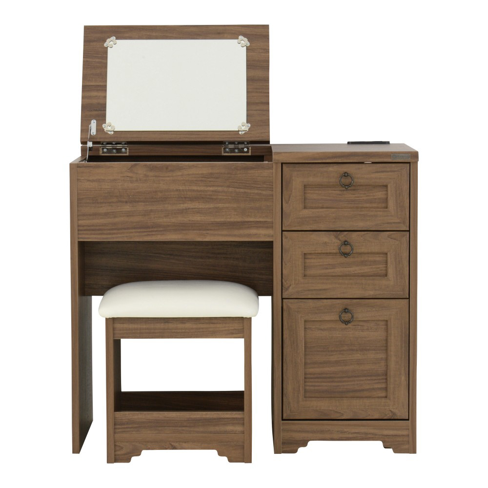 女性らしいデザインが人気のデスクドレッサー。開閉式ミラーの中にコスメなどがたっぷり入り、使いやすさも抜群です♪