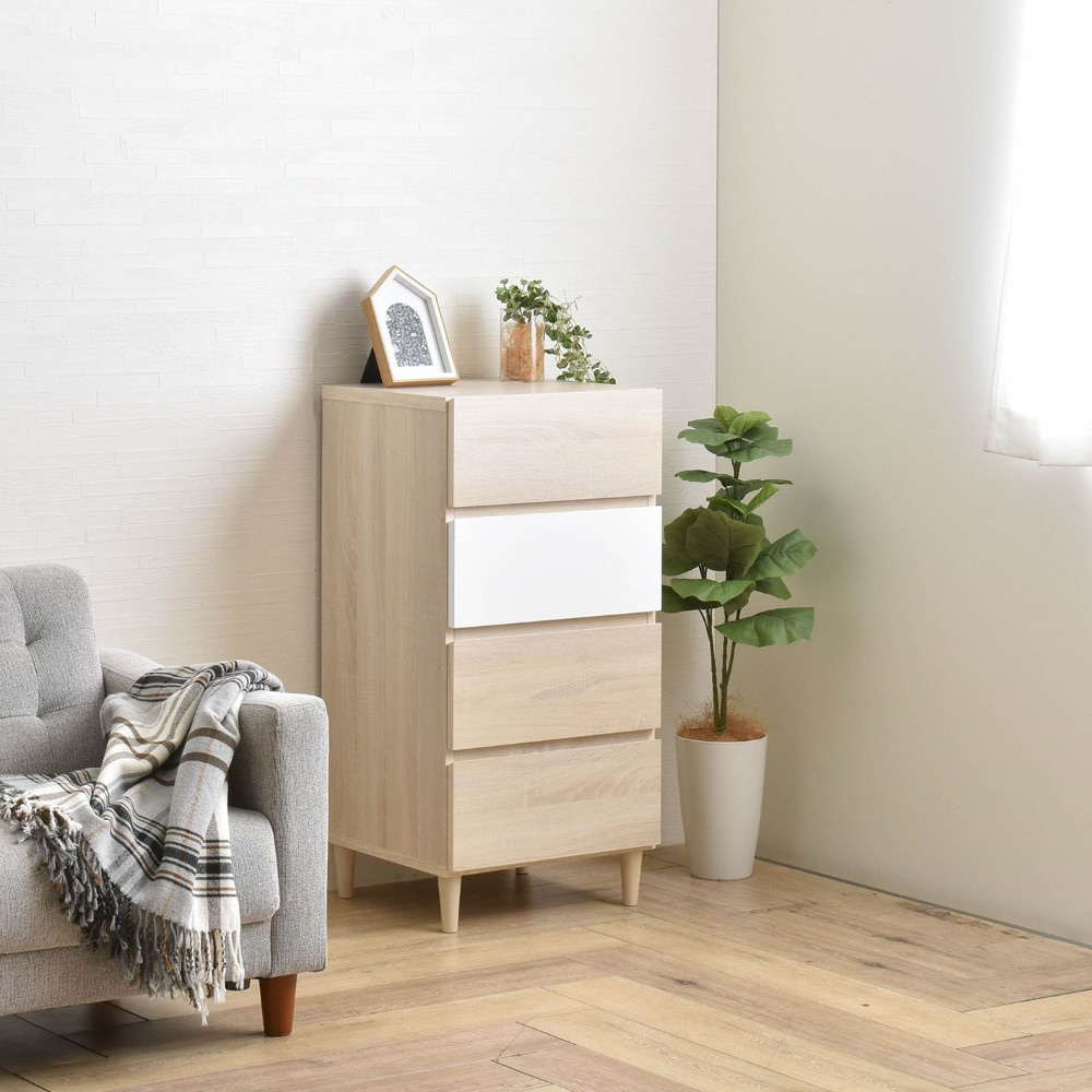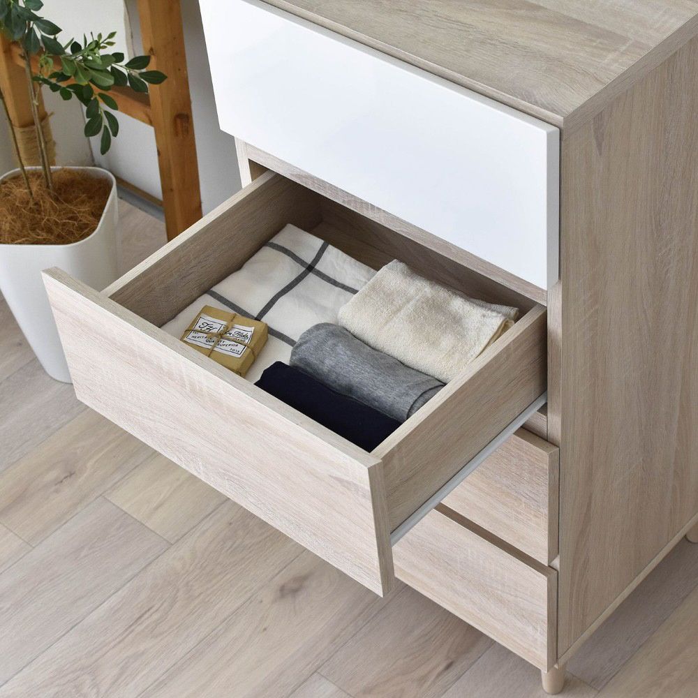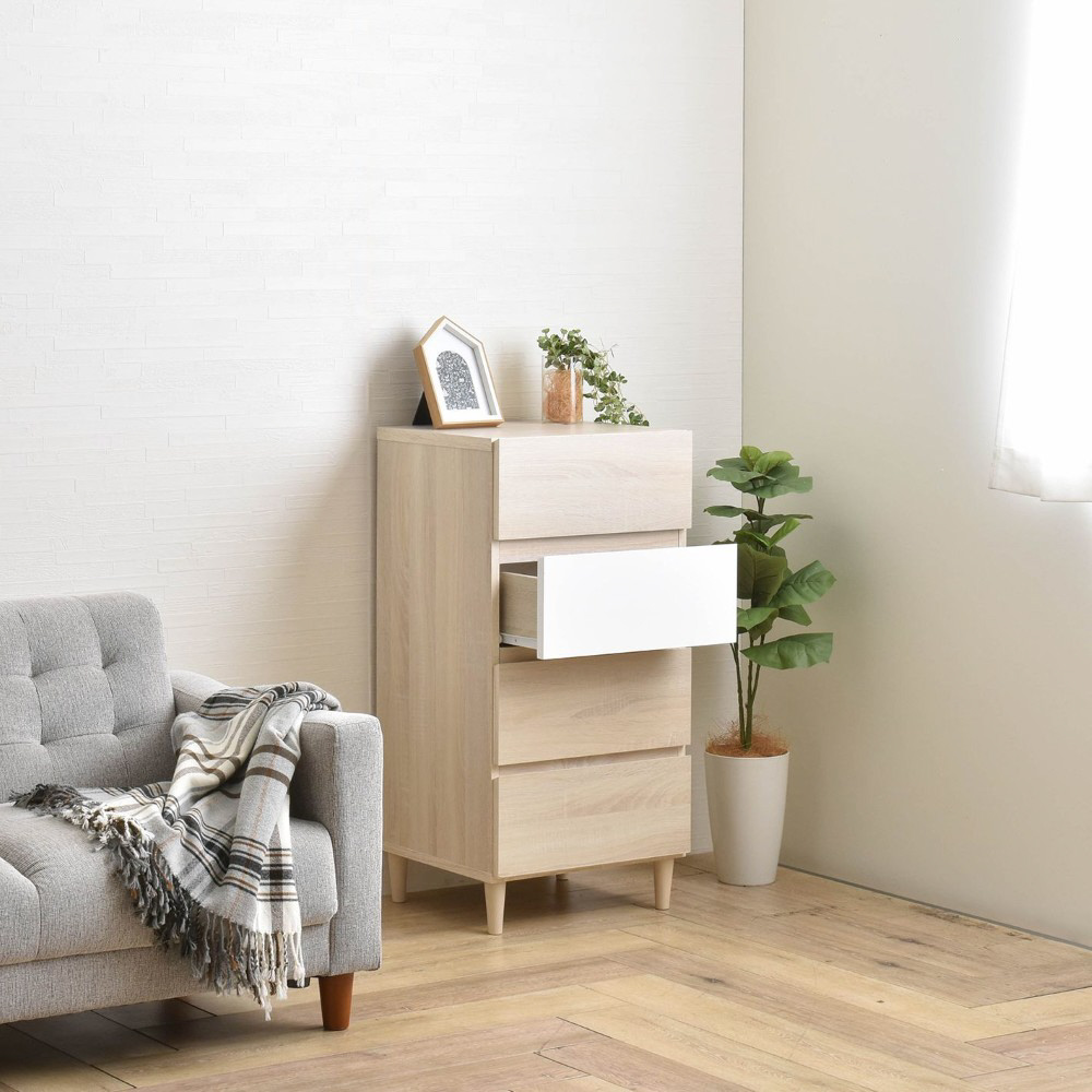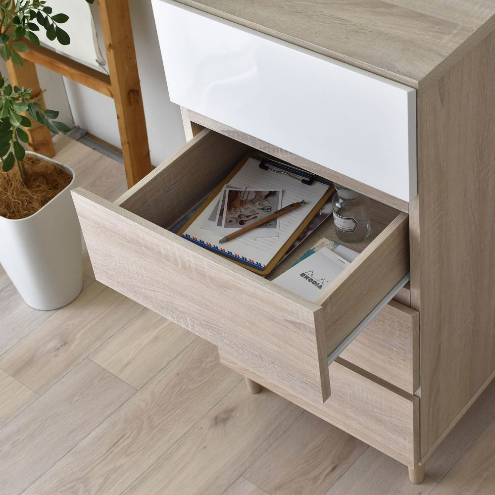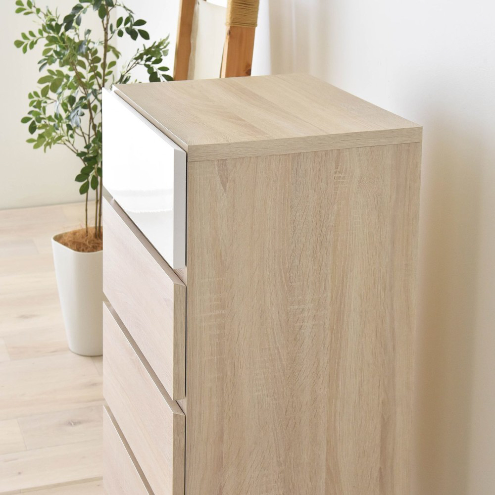 光沢が美しい鏡面加工がモダンで都会的な印象の4段チェスト。リビングや寝室、様々な場所で使えるシンプルなデザイン。