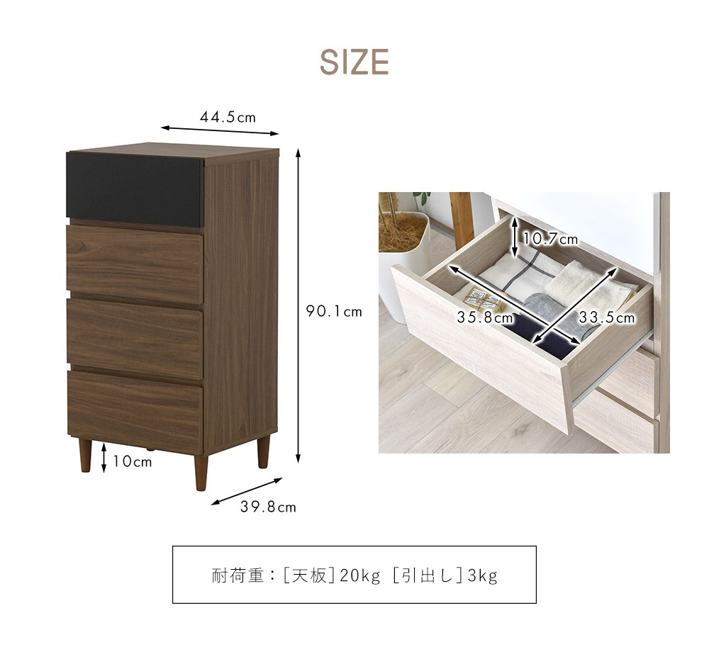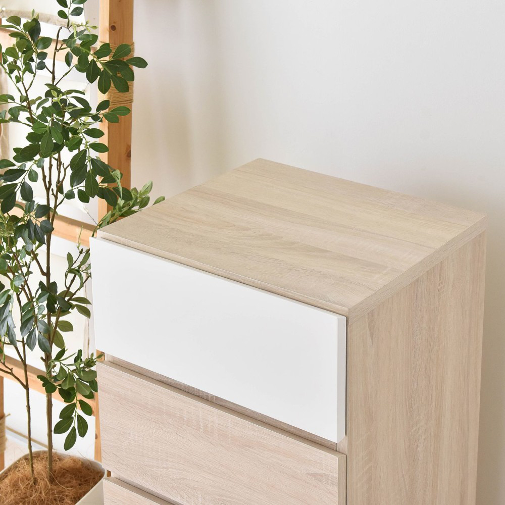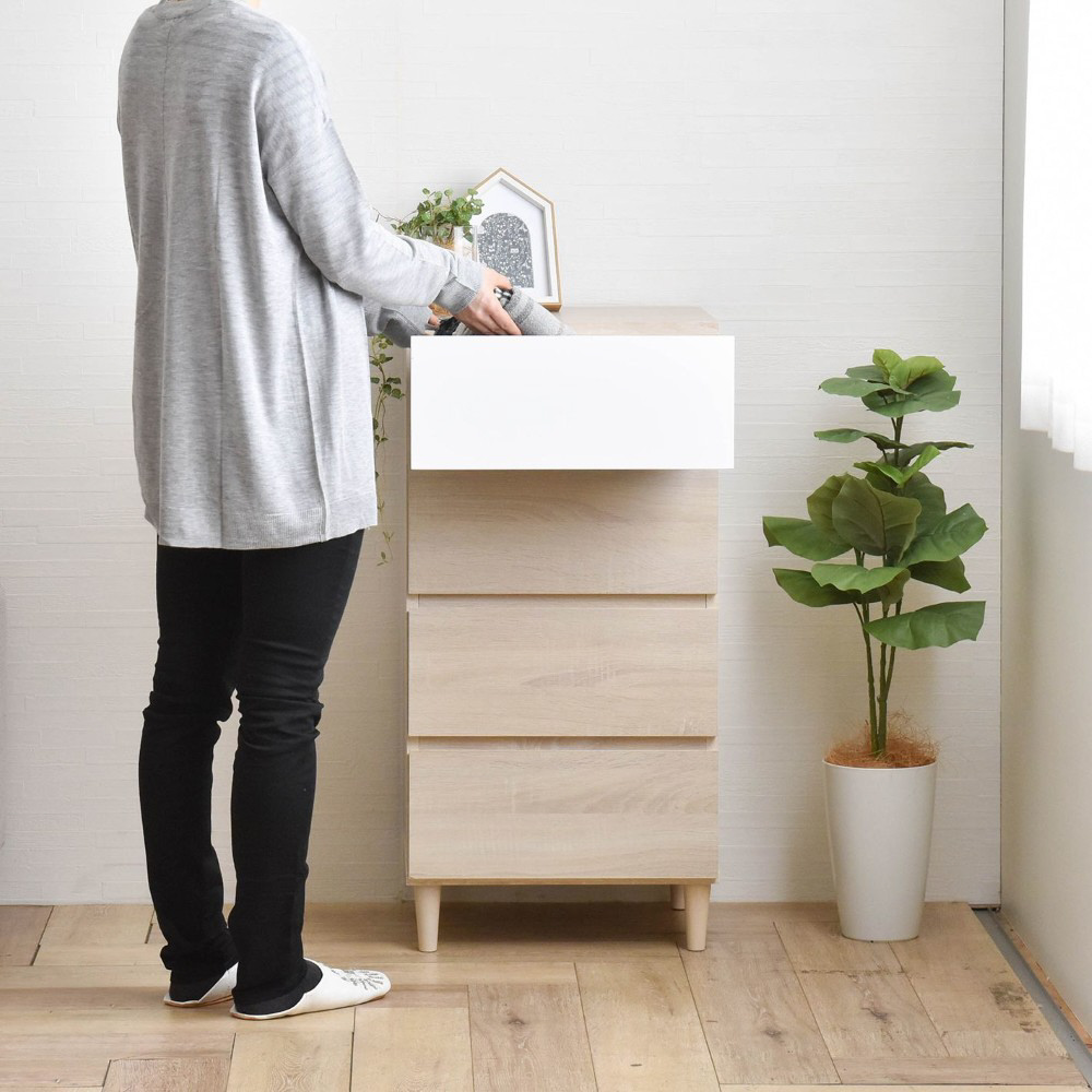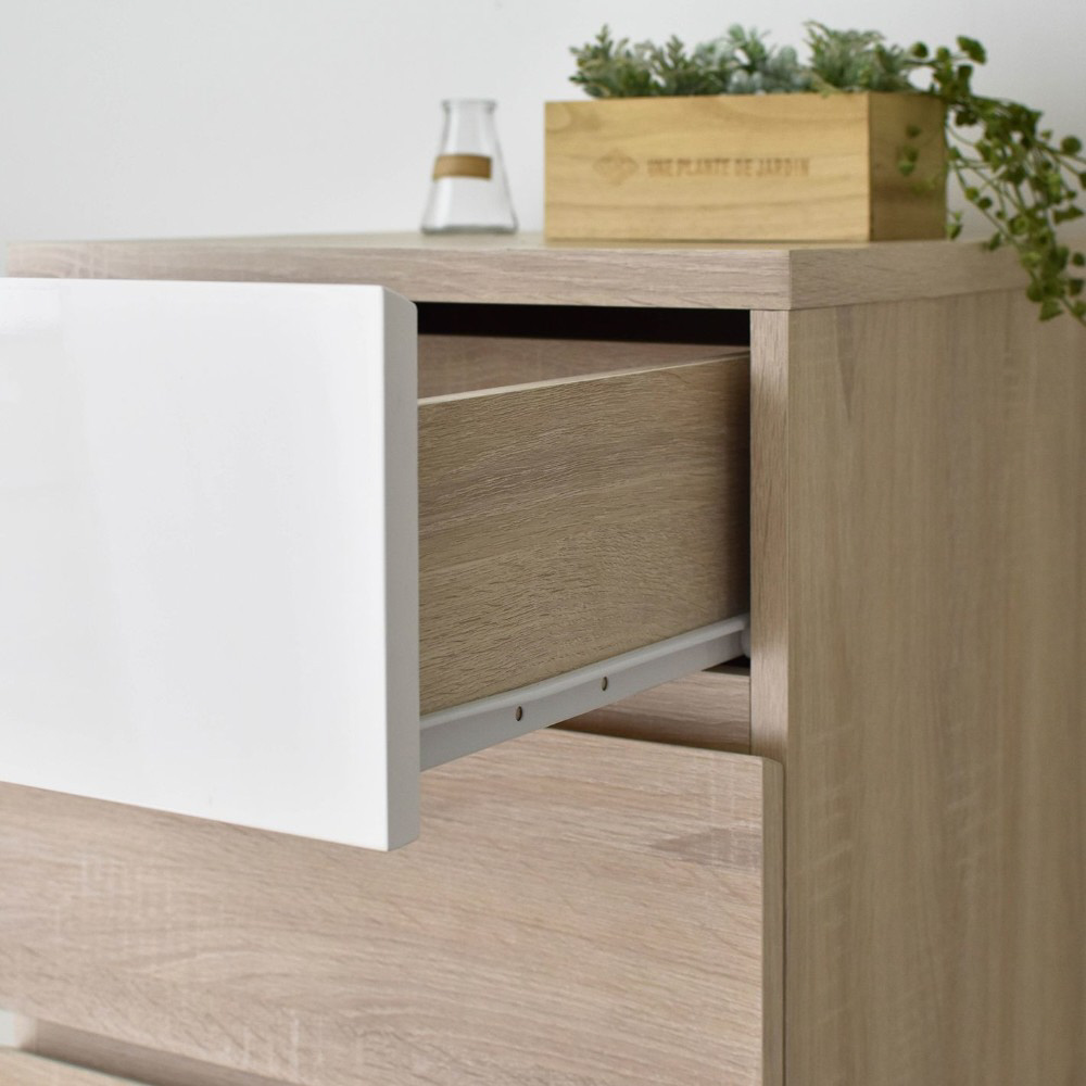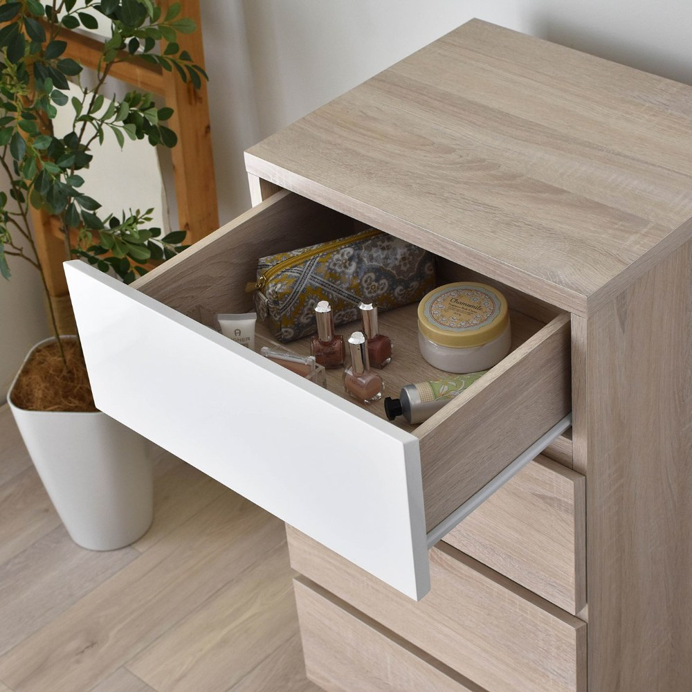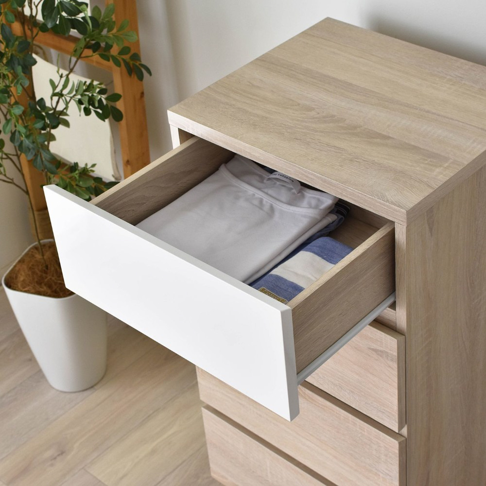 光沢が美しい鏡面加工がモダンで都会的な印象の4段チェスト。リビングや寝室、様々な場所で使えるシンプルなデザイン。