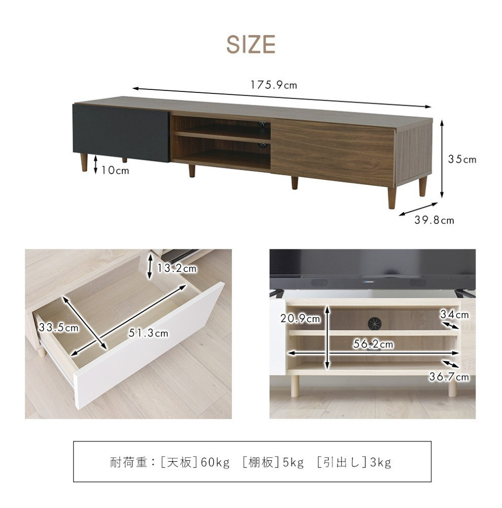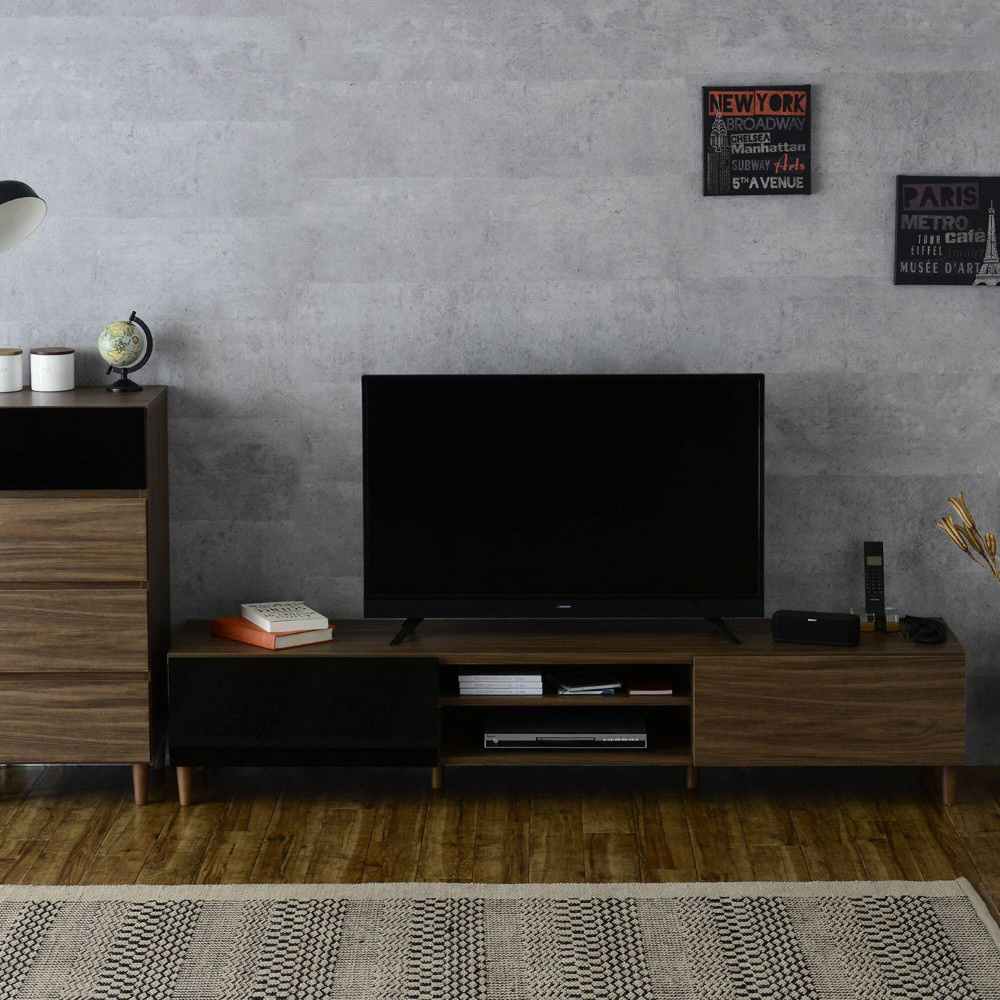 テレビの薄型化や大型化に合わせて、少し低めのサイズに設計し、大き目のテレビを置いても自然な目線でテレビを視聴することができ、疲れにくいのも特徴です。