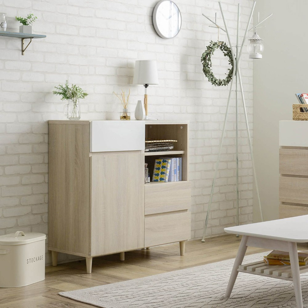 リビングやベッドルームで、テレビ、オーディオ、電話台として使用したり、ワークスペースとしても使いやすい高さとなっています。