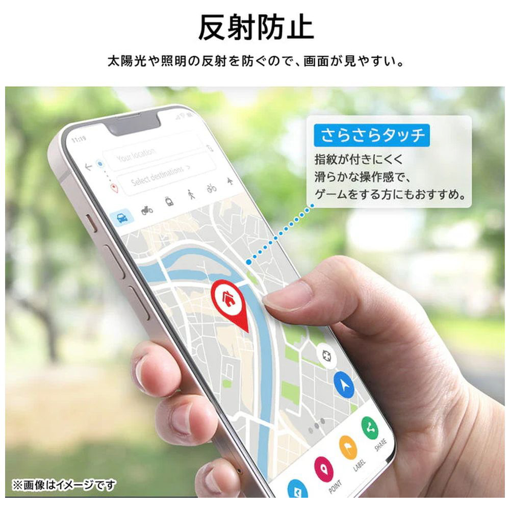 割れにくく、しなやかなPET素材を使用した反射防止フィルム。 上下で順番に貼れるので、位置合わせがしやすく、貼り付けもスムーズです。 さらさらとしたマットな表面で、指紋が目立ちにくく、屋外でも画面が見やすいです。 抗菌・抗ウイルス加工が施されており、清潔さを保ちたい方にもおすすめです。