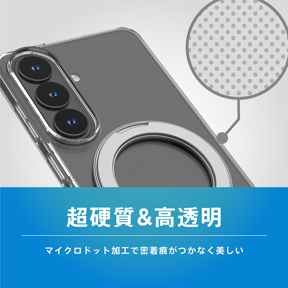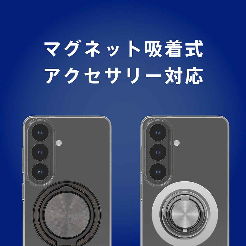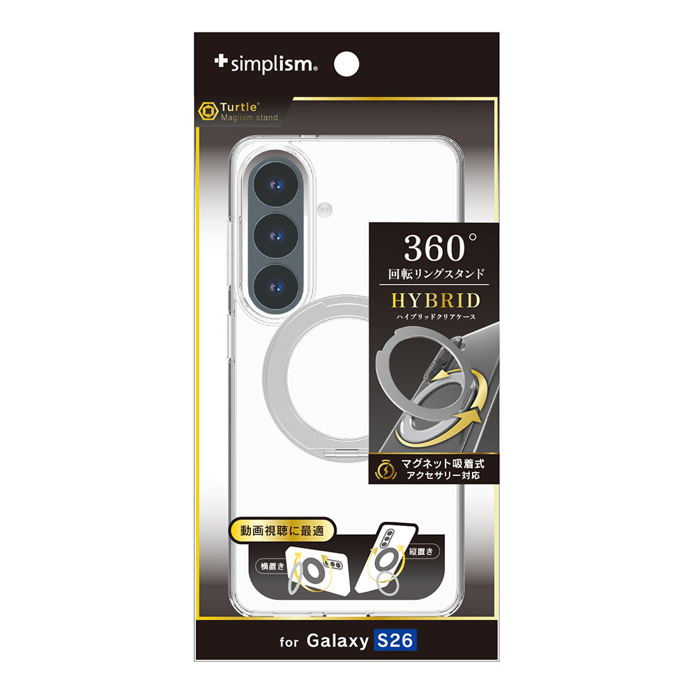 Galaxy S26 [Turtle MagStand] マグネット吸着式アクセサリー対応 リングスタンド付きハイブリッドクリアケース シルバーリングスタンド