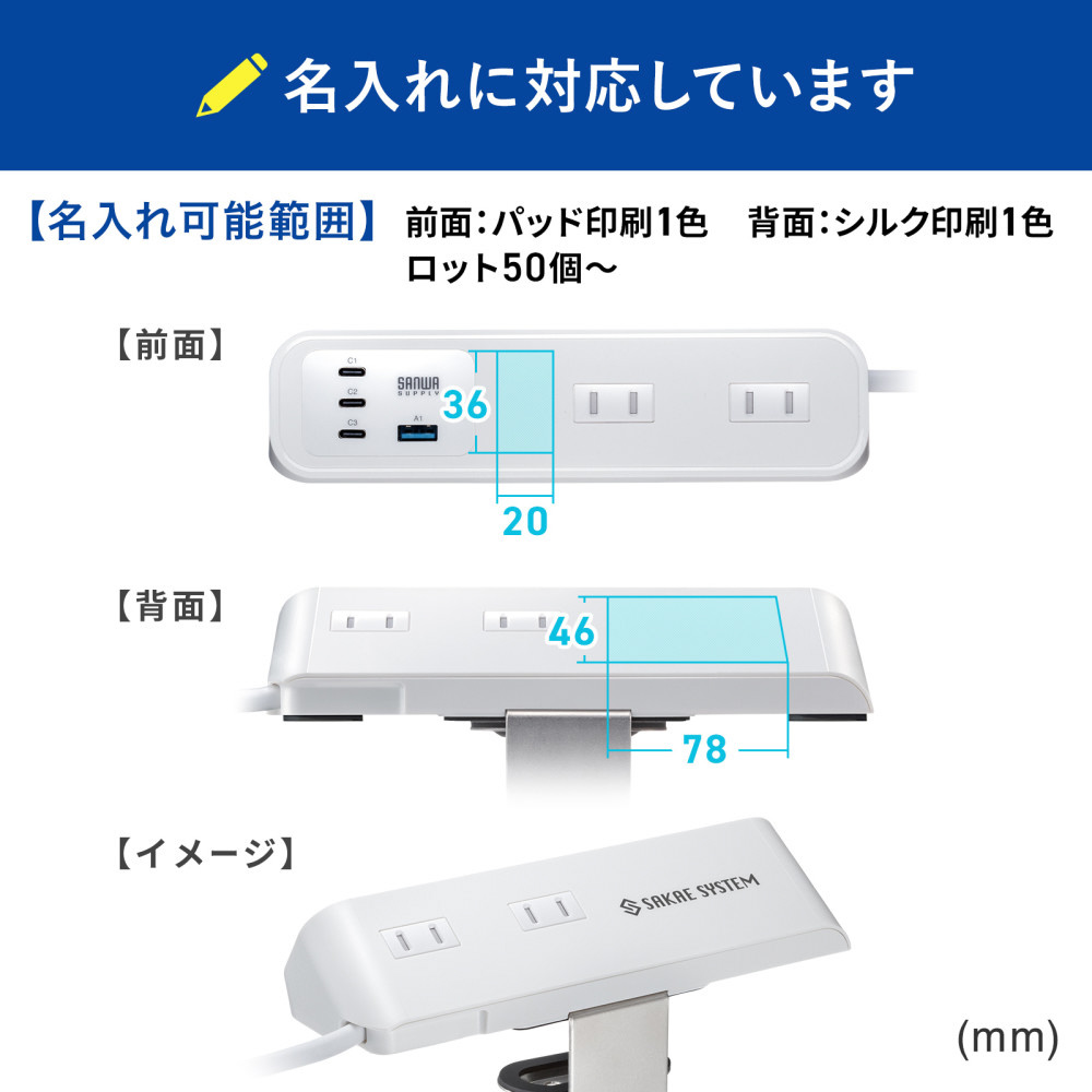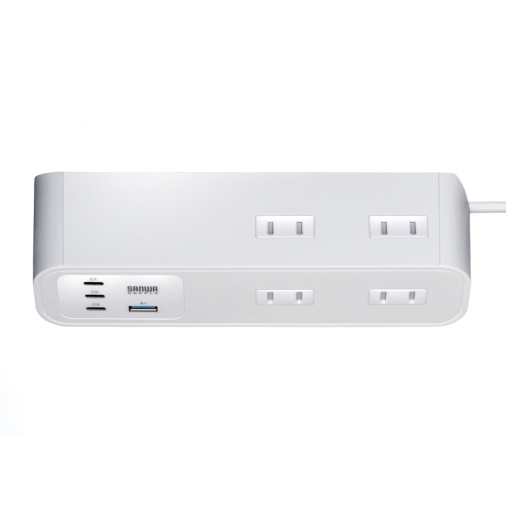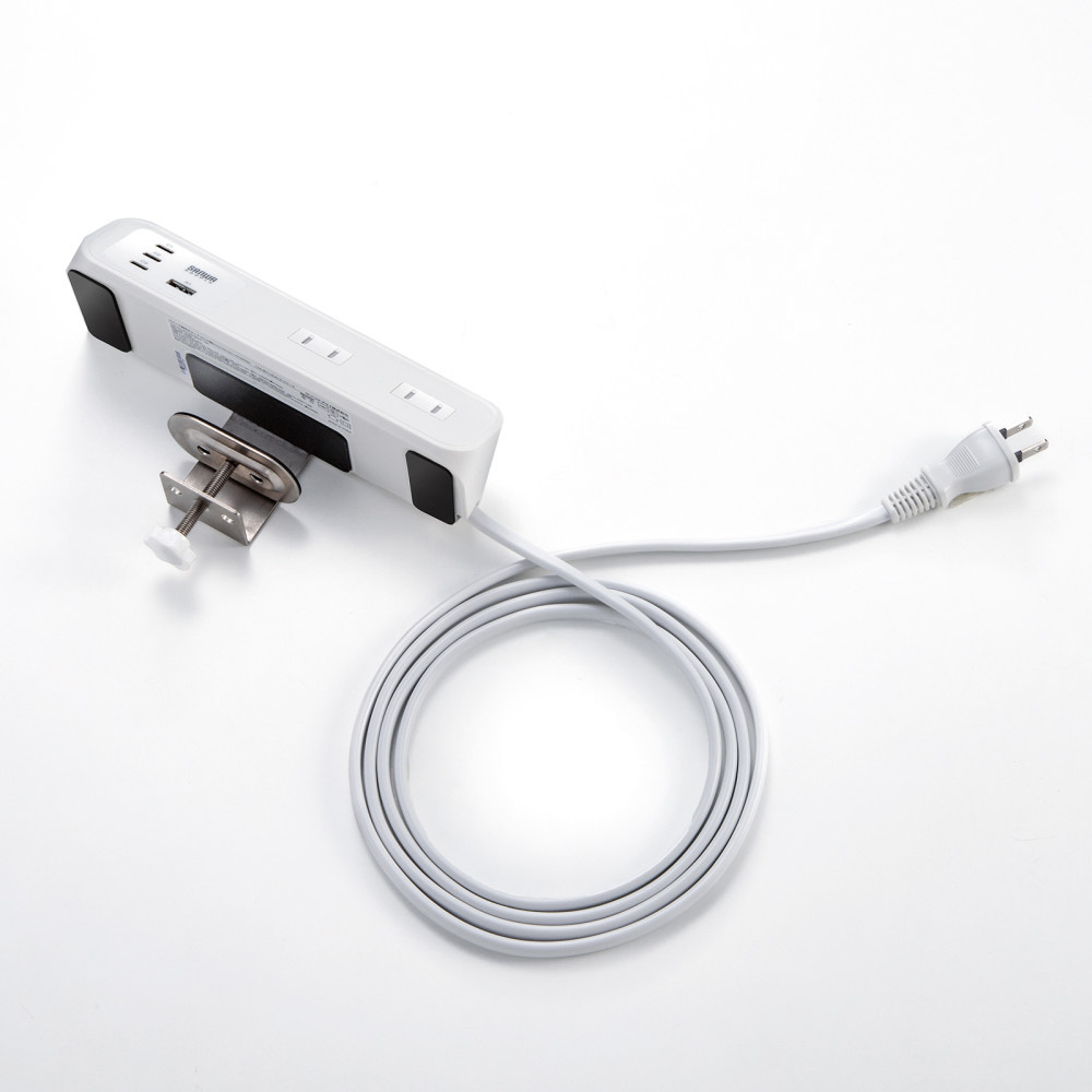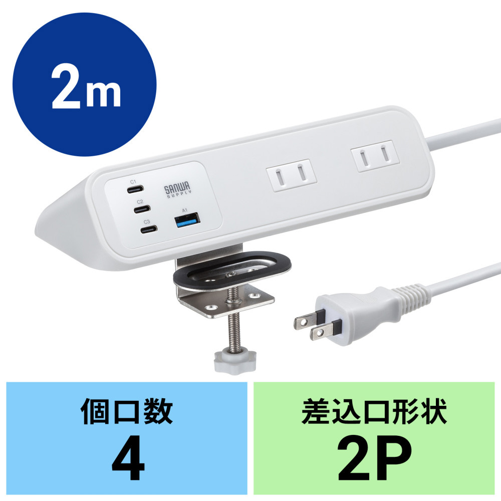 クランプ固定式タップ(AC4個口+USB-C×3+USB-A×1・PD65W・ホワイト) TAP-B114UC-2W