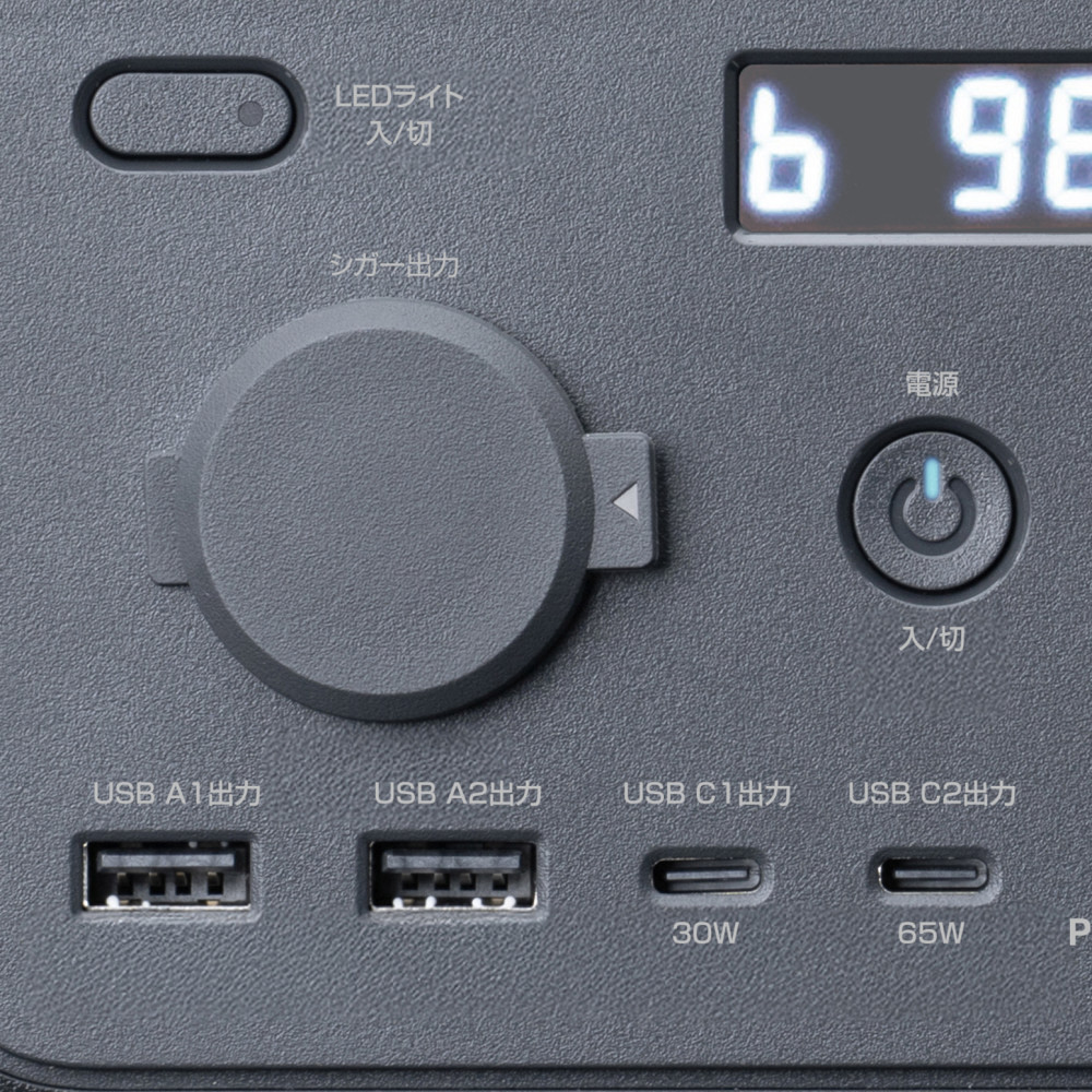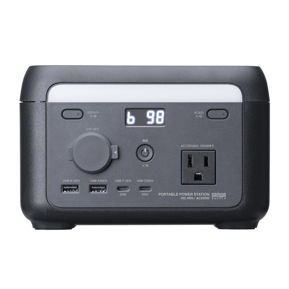 ポータブル電源(102.4Wh・AC200W)リン酸鉄リチウム USB C×2/USB A×2 正弦波 LCD残量表示 急速充電 LEDライト搭載