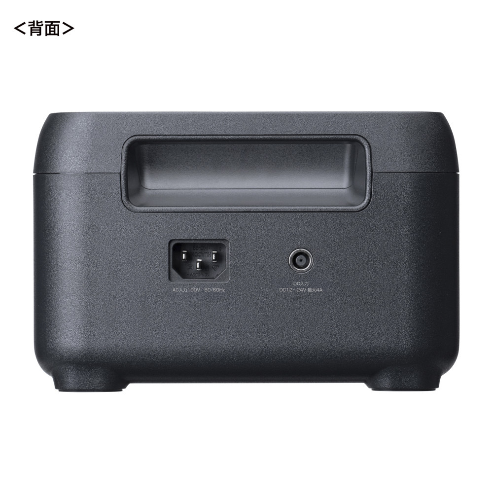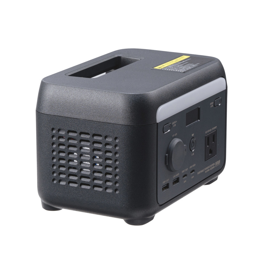 リン酸鉄リチウムイオン電池を搭載した持ち運びに便利なコンパクトで軽量設計のポータブル電源。ACアダプタ不要で直接AC電源コード接続で蓄電できる。