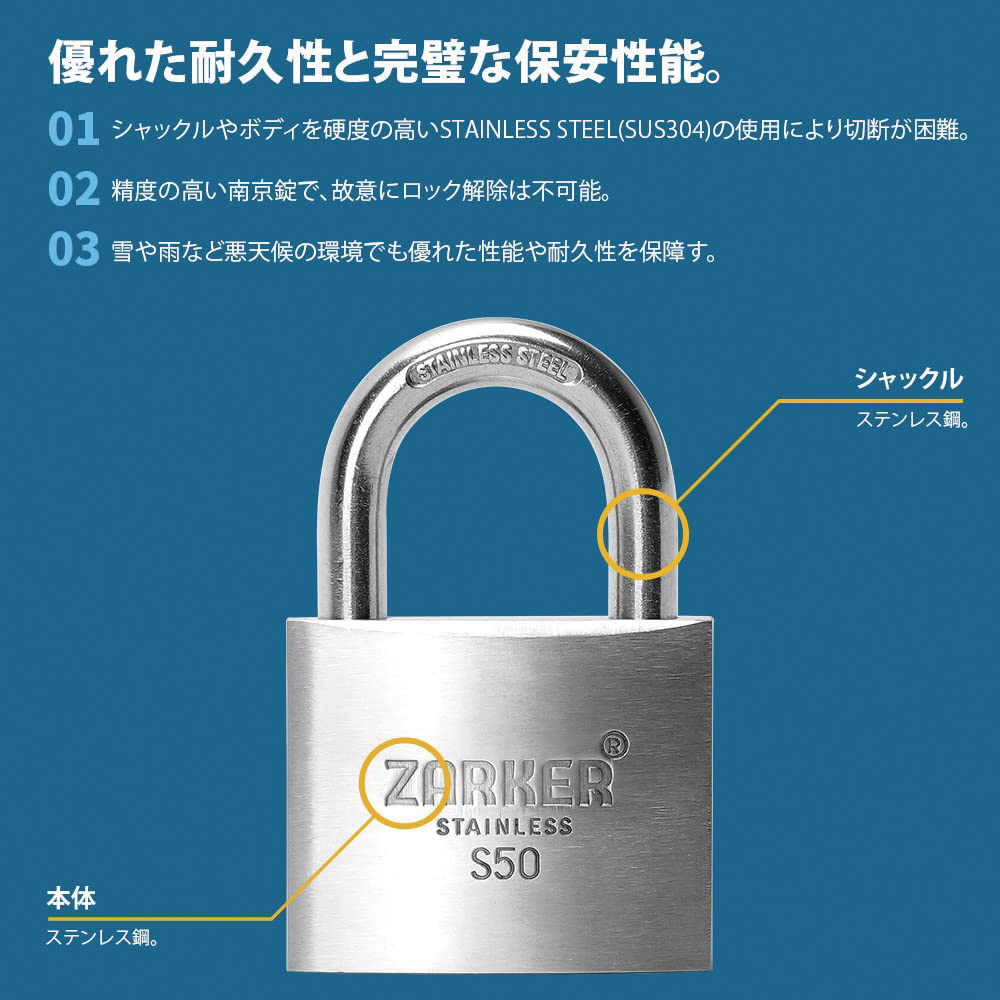 ●雨や雪など天気の影響を受ける屋外で長時間耐える南京錠です。