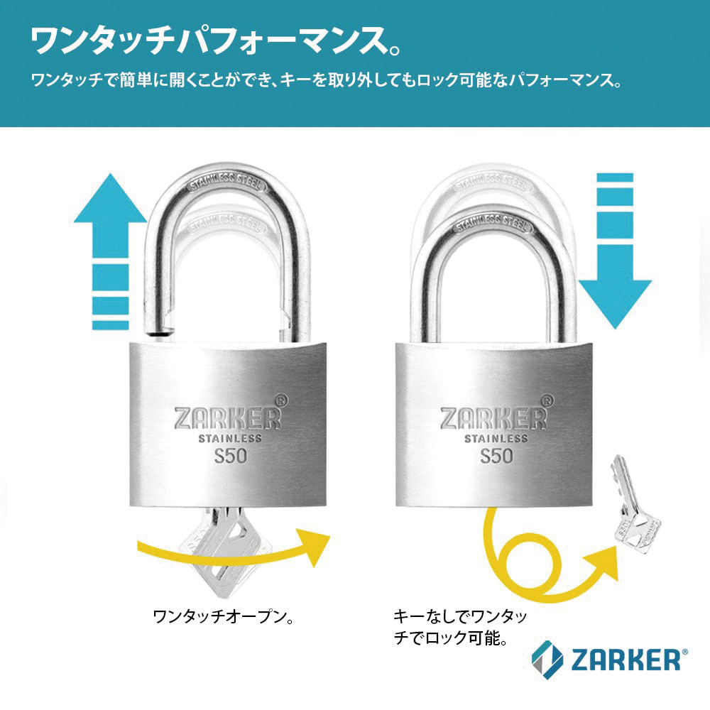 キー式 防錆セキュリティ南京錠 ツル径8mm シルバー S50