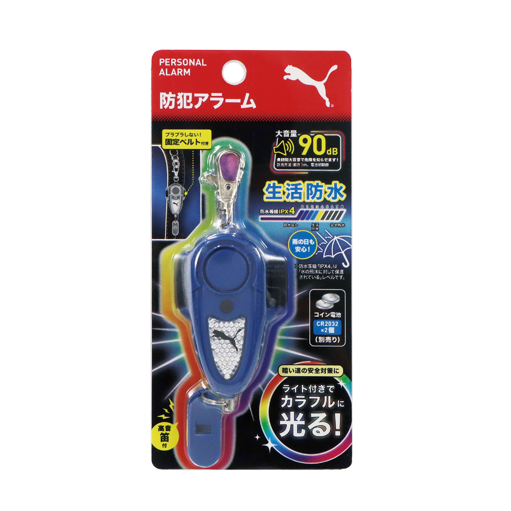 危険を知らせる90dBの大音量アラーム パッキン内蔵で雨の日も安心 点滅式LEDライト付で暗い道でも安全 緊急時に電池がなくても使える笛付 CR2032コイン型リチウム電池2個使用(別売)