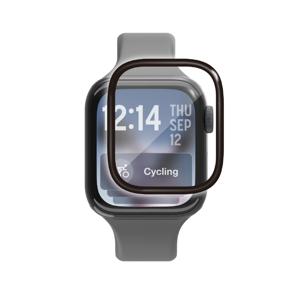 高硬度10Hの強化ガラスを採用し、画面の美しさを損ねずに傷や汚れから保護する、高透明・指紋防止タイプのApple Watch用フルカバーガラスフィルムです。