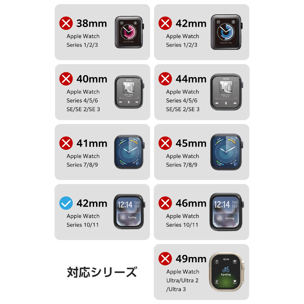 アップルウォッチ ガラス フィルム 【 Apple Watch Series 11 / 10 [ 42mm ] 対応 】 全面保護 表面硬度10H 高透明 指紋防止 飛散防止 気泡防止 ブラック ブラック AW-25BFLGGR