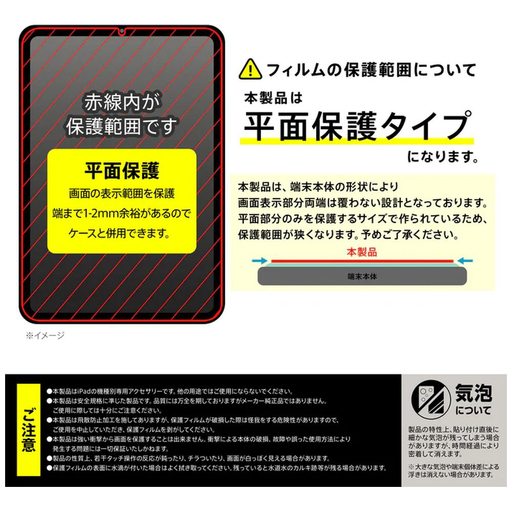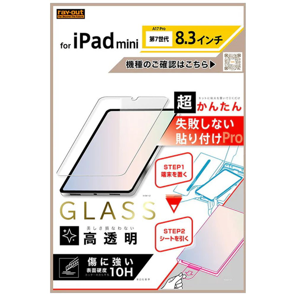 iPad mini(A17 Pro)用 超かんたん 貼り付けPRO ガラスフィルム 平面保護 高透明 / クリア RT-PA17FK3/SCG3