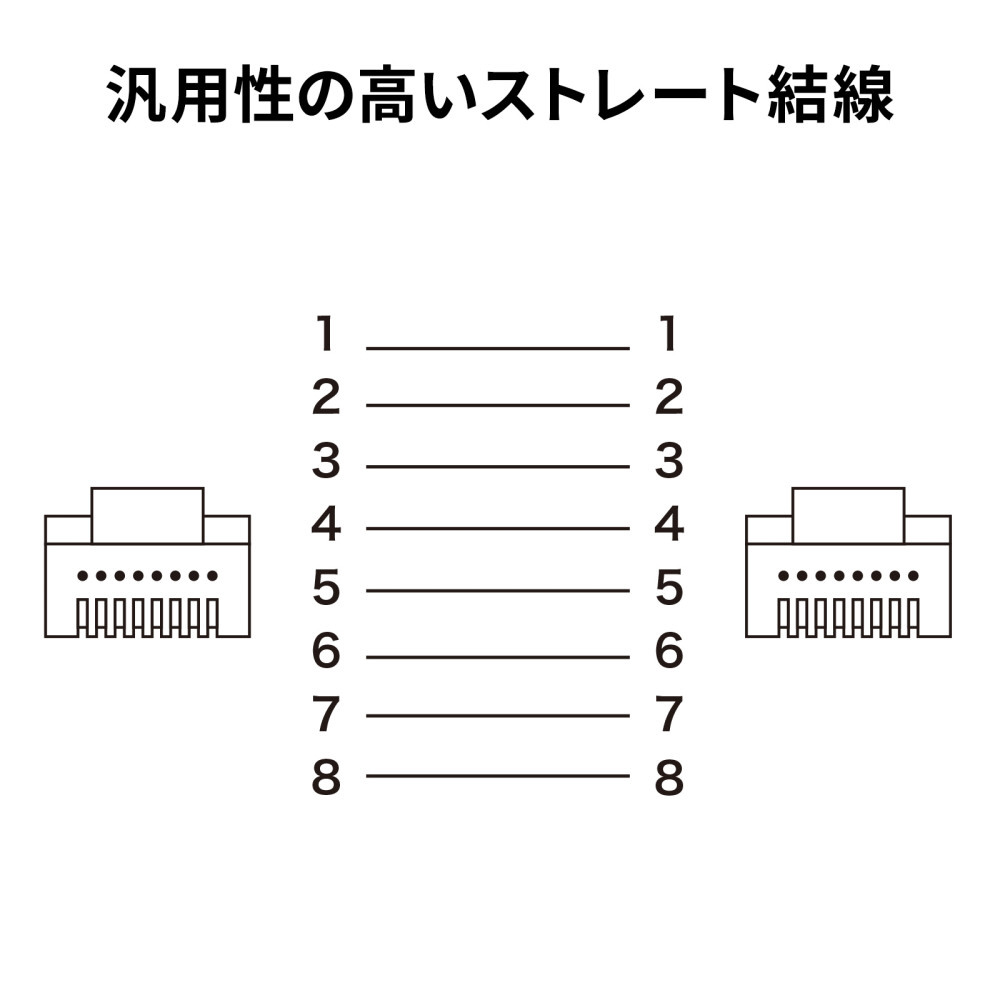 [対応カテゴリ・規格]カテゴリ7(10GBASE-T)、カテゴリ6A(10GBASE-T)、カテゴリ6(1000BASE-TX)、カテゴリ5e(1000BASE-T)、カテゴリ5(100BASE-TX)、カテゴリ3(10BASE-T)適合