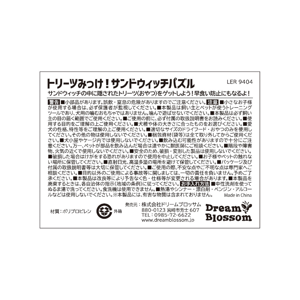 ・4層構造の回転するサンドウィッチ型のトリーツ玩具です。