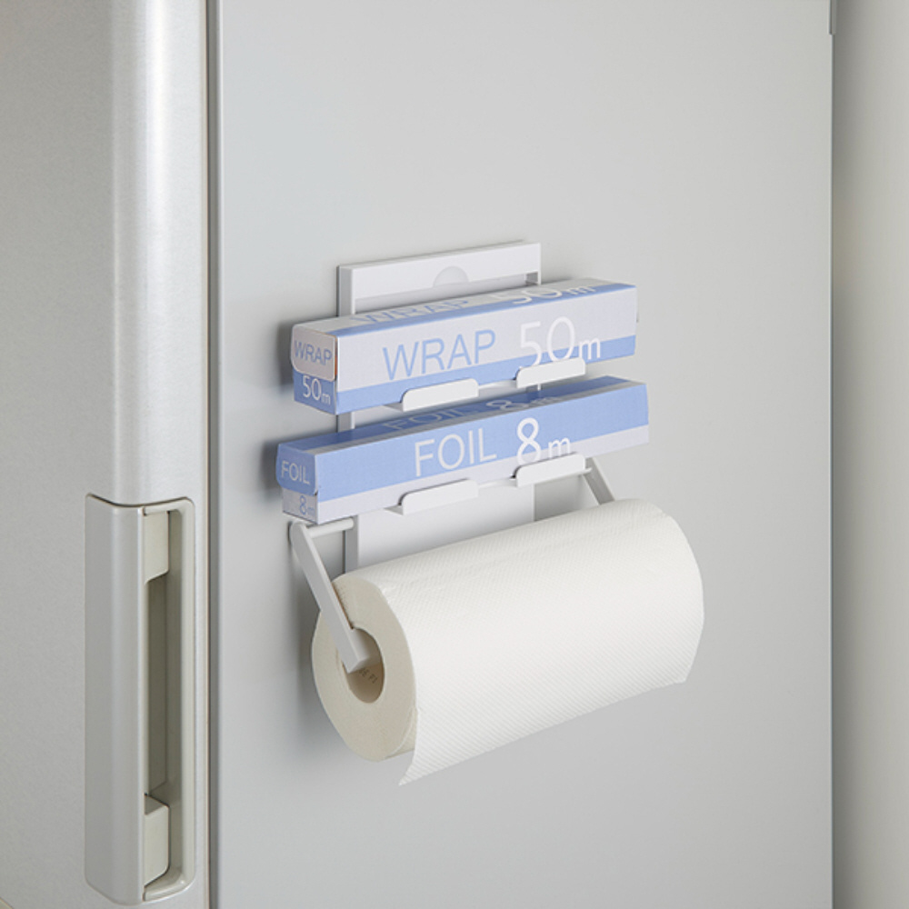 ラップ、アルミホイル、キッチンペーパーをひとつにまとめて収納できます。