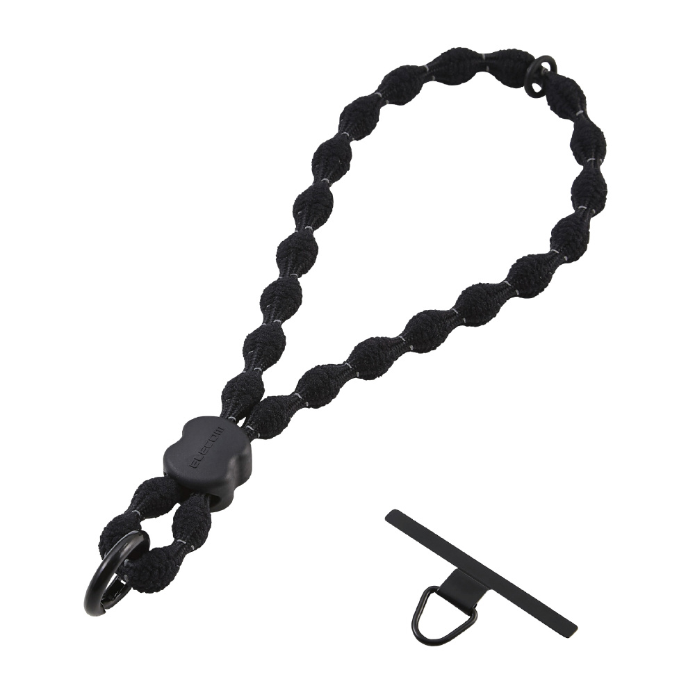 スマホストラップ ハンドストラップ 手首用 全機種対応 落下・紛失防止 やわらか伸縮タイプ 特許こぶ型ひも 反射糸で夜間も安心 軽量 ストラップホールシート付属 AIRFLEX ブラック P-STHFLBK